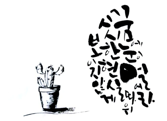 갑자기 붓을 들고 그 문구를 캘리그래피로 마구 써 내려갔던 때가 생각났다. 잘 쓰고 멋스럽게 쓰고 그런 게 중요하지 않았다.