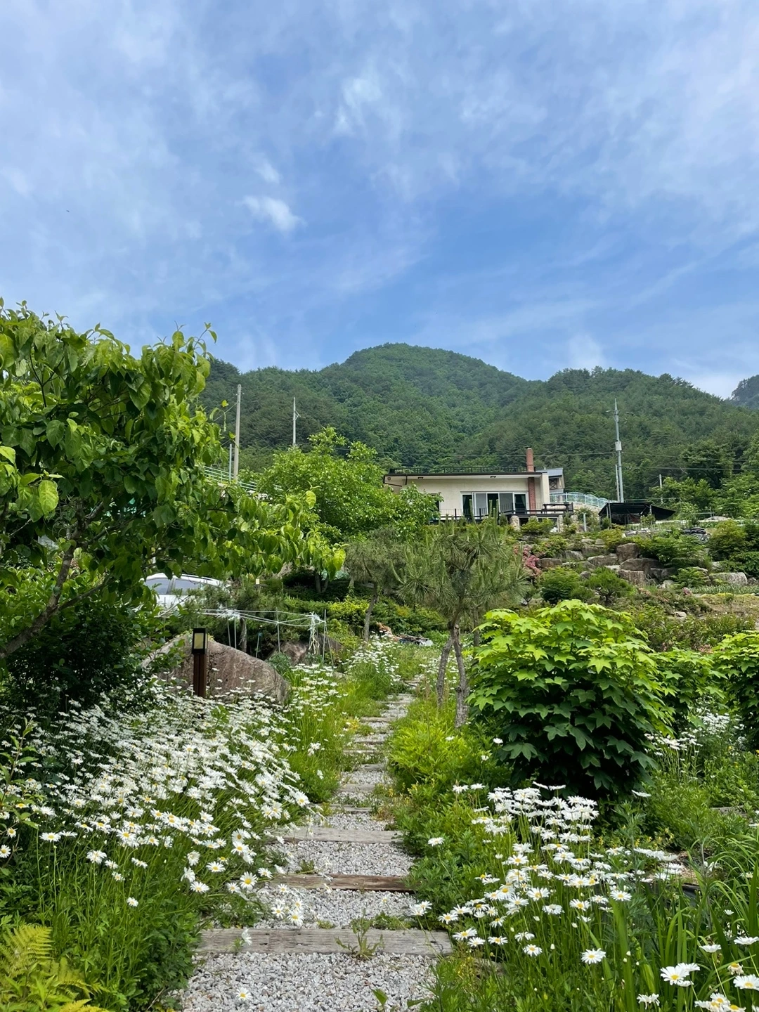 봄이라 사방이 푸릇푸릇하고 예쁜 꽃들이 피어 기분도 활짝 피었습니다. 바로 옆에 계곡 물이 콸콸 쏟아지는데 그 소리를 전할 수 있으면 좋을 텐데 아쉽습니다.