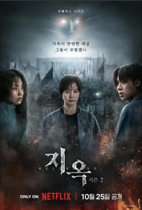 연산호 감독의 지옥 시즌 2를 몰아봤다. 정진수는 지옥의 고지는 인간의 죄에서 온다는 헤게모니를 만들고 그 선두에 선다. 하지만, 실제 그는 죄가 없는 자신이 왜 고지를 받았는지 인정하지 못하고 억울해하고 두려워하다 예정대로 지옥에 간다. 정진수가 만든 새진리회와 그를 추앙하는 화살촉은 마녀사냥을 시작하지만 태어난 지 얼마 안 된 신생아가 고지를 받았다는 것에 혼란에 빠진다. 여기까지가 시즌 1이다. 그리고 2에 서는 다시 부활한 첫 번째 죄인 박정자와 정진수가 다시 부활한다. 사람들은 그들의 죽음과 부활에 인과의 의미를 부여하려 하지만, 실제는 아무 의미가 없다. 무더기의 고지가 쏟아지고, 자신을 구해 아이들에게 돌려보내주려 한 민혜진에게 부활자 박정자가 속삭인다.