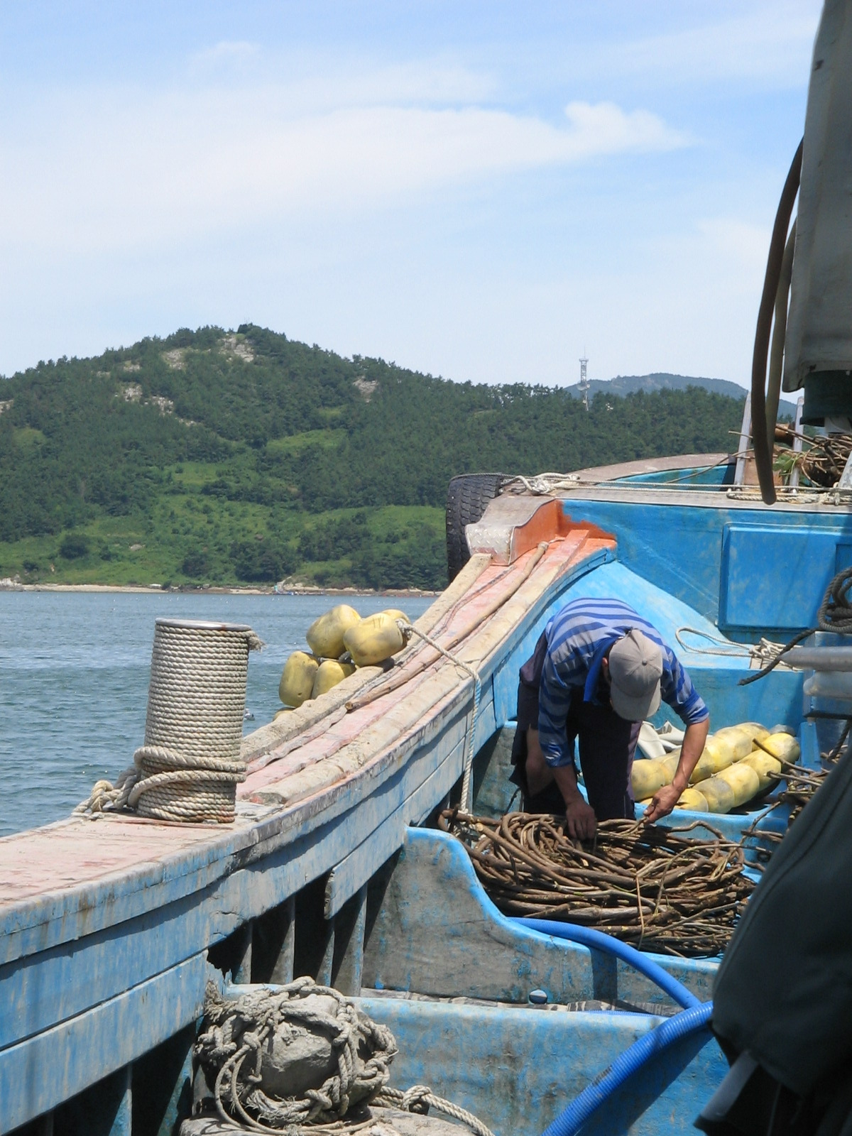 아마 미쳤다고 할 거다. 여자 혼자 덜렁 알 수 없는 배를 의심 없이 타는... 이럴 땐... 난 나의 직감을 믿는다. 이 배는 안전하다는. 아니 어쩌면 안전하다고 믿고 싶었다. 허공에 날아가는 같은 질문을 이 사람 저 사람에게 받고, 선장아저씨에게 신고를 하고, 간첩이 아니라는 증거를 남기기 위해 신상을 적었다. 시원한 숭늉 한 한 대접을 얻어 마시고 나서야 난 숨을 고를 수 있었다.