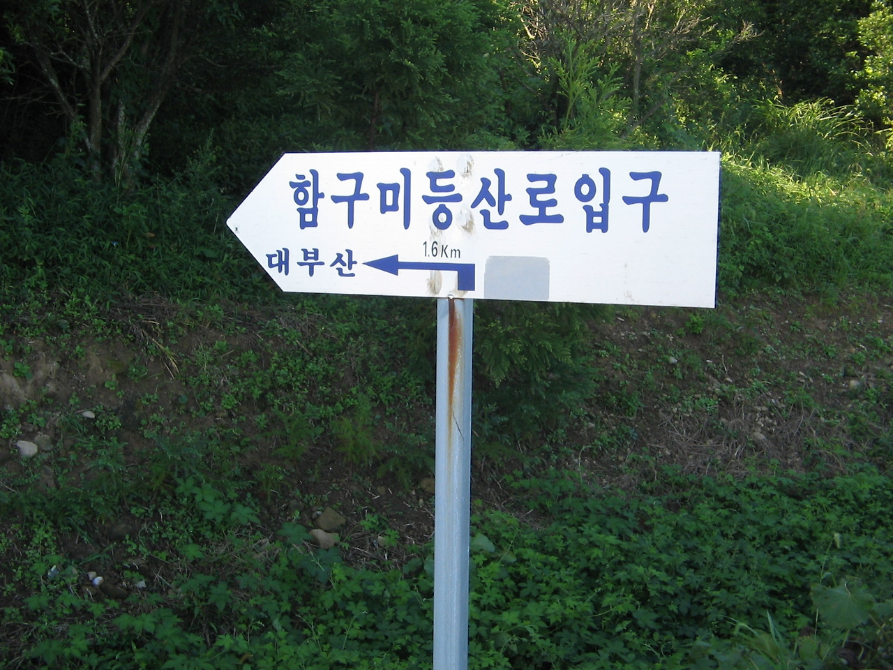 라는 말을 믿고, 다음날 대부산 정상을 올라 능선을 타고 칼이봉 까지 갈 작정으로 아침 일찍 길을 나섰다. 민박집 옆 슈퍼 사장님의 용달을 얻어 타고 함구미 등산로 입구로 갔다. 식당이 없는 너무나 그저 섬 동네인 직포에서, 아침 대용으로 형부의 첫 번째 사과를 먹었다. 달았다.