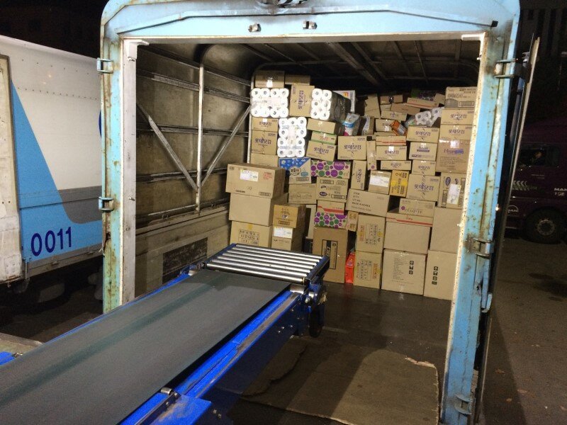 무거운 물건부터 트럭안에 쌓아야 안 무너진다. 들어오는 물품을 재빨리 보고 판단해서 맨 안쪽부터 채워야 한다. 한번이라도 박스탑이 무너지면 불호령이 떨어졌다.