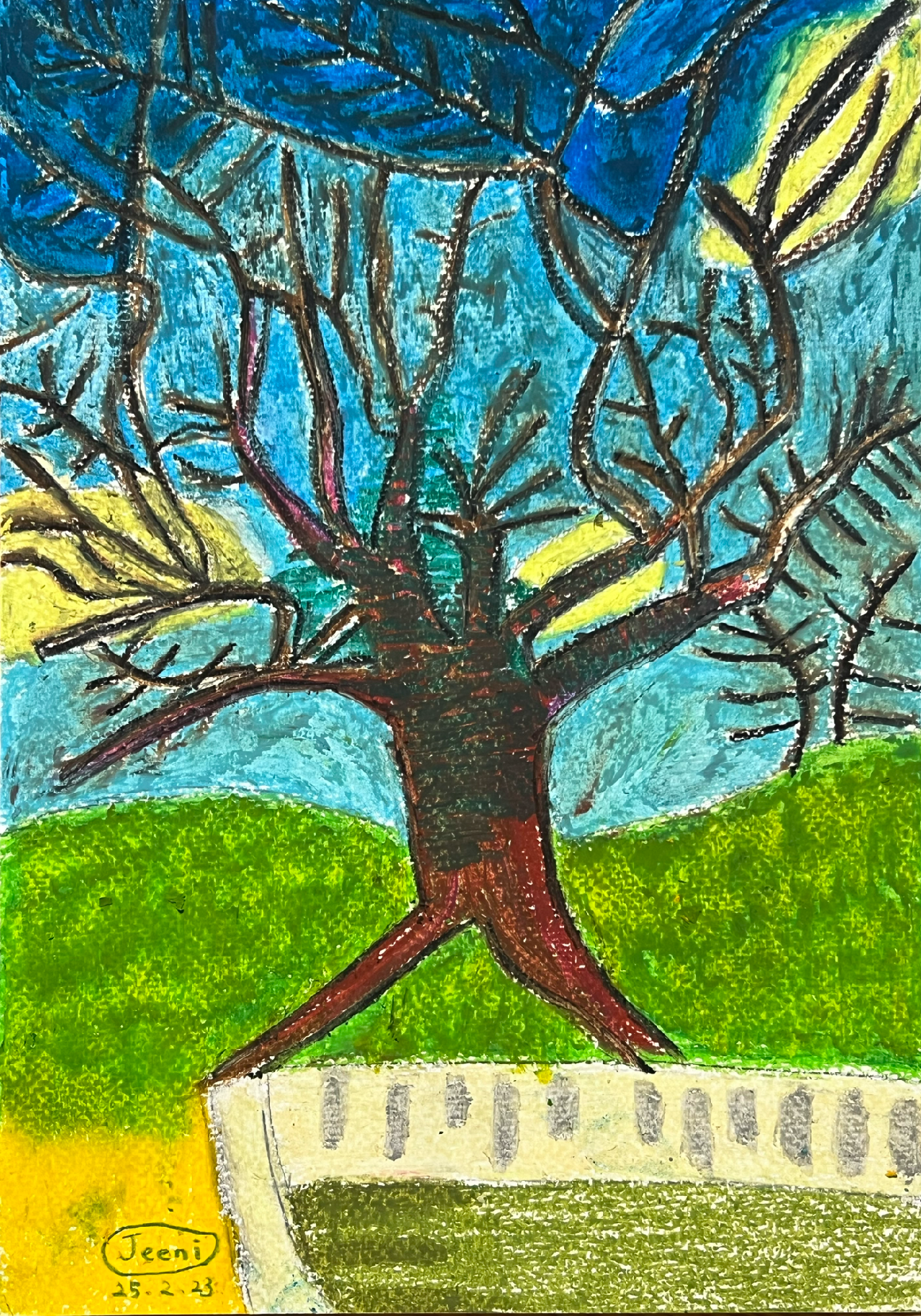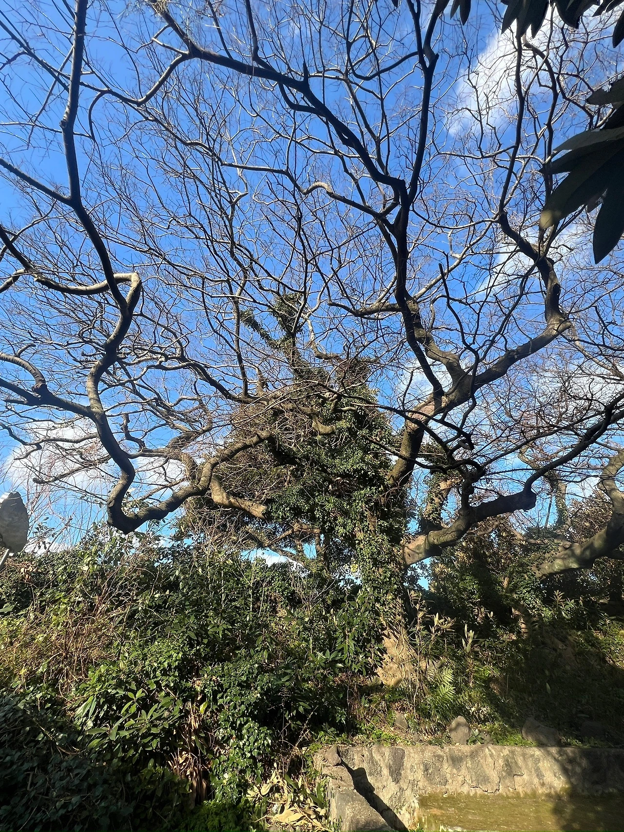 마을을 산책하던 중, 조그마한 언덕배기에 자리한 오래된 돌담을 마주했어. 돌담 너머로 울창한 팽나무숲이 펼쳐져 있었고, 그 아래로 작은 제단이 놓여 있어. 처음에는 그저 오래된 마을 공간이려니 하며 발걸음을 들였어. 그런데 이상하게도 나도 모르게 팽나무 앞으로 이끌려 갔어. 거기서 한참을 머물며 주변을 둘러보았지.