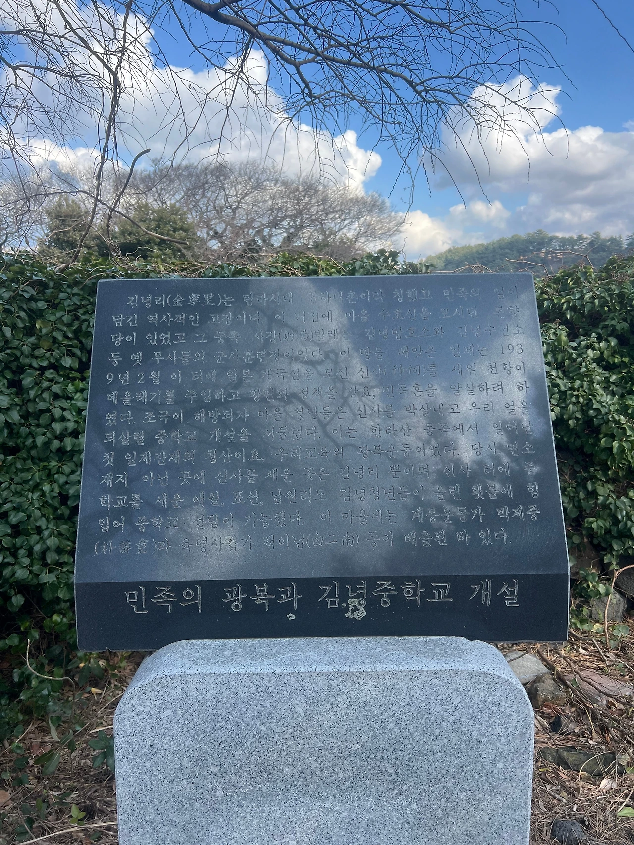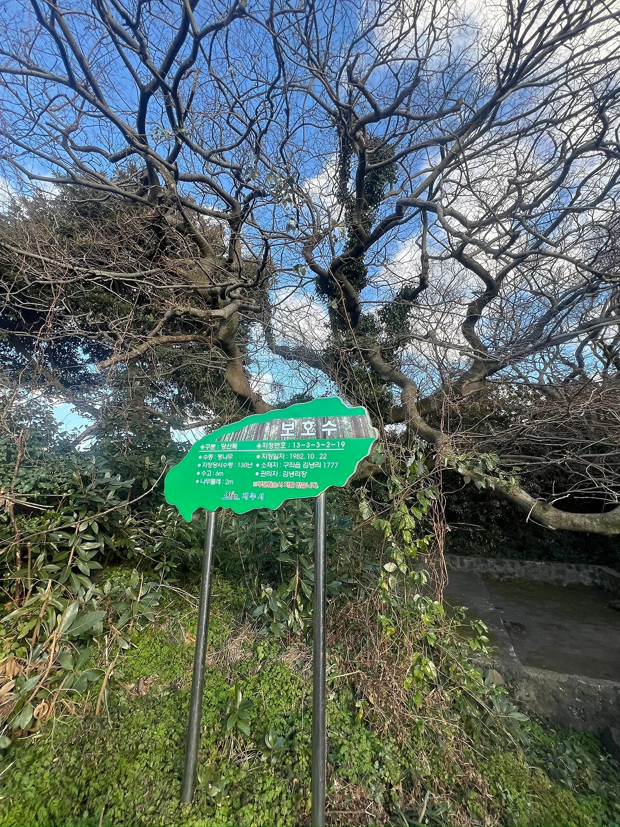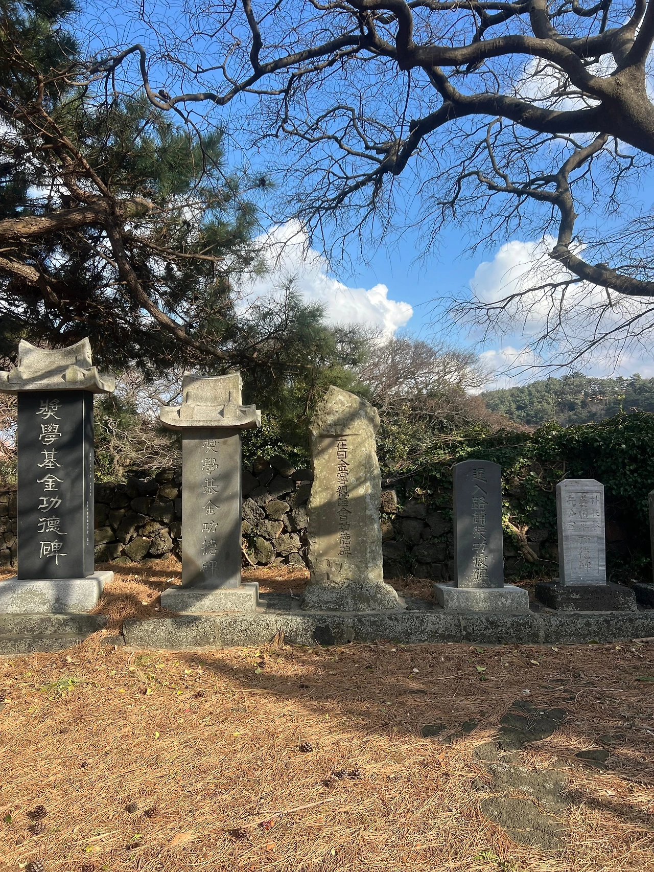 나중에서야 알게 된 사실이지만, 그곳은 김녕리의 본향당이었어. 마을이 커지면서 여러 당이 생겨났고, 이곳 또한 그중 하나였어. 농경신인 ‘큰도안전 큰도부인’을 섬기는 본향당이야. 팽나무 아래 낮은 터에 자리한 제단, 돌담으로 둘러싸인 공간, 그리고 세월이 스며든 듯한 고요함. 비록 지금은 본향굿이 행해지지 않지만, 이곳은 여전히 마을의 한 부분으로서 조용히 그 자리를 지키고 있었어.