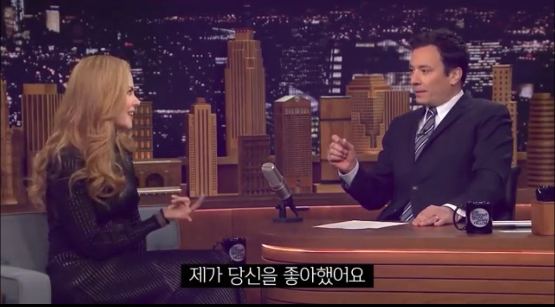헐리웃배우 니콜키드먼은 호감이 있던 남자 지미팰런을 찾아갑니다. 그러나 지미팰런 그런 사실을 꿈에도 모르지요. 당연히 니콜키드먼처럼 유명한 배우가 자신을 찾아오다니. 너무 긴장한 나머지 한마디도 하지 못하고 맙니다. 그래서 니콜키드먼은 이렇게 생각합니다.