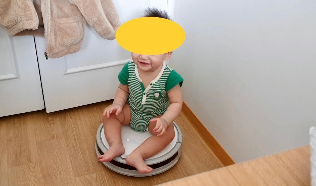 로봇청소기 이모님이 계시니 청소는 할 만해요. 하루에도 몇 번씩 로봇청소기 이모님을 돌리면 바닥이 깨끗해져요. 버튼 하나만 누르면 돼서 신경 쓸 것도 별로 없어요. 때 되면 필터 갈아주고 먼지통 청소해 주는 수고는 기꺼이 해요. 아기를 낳자 우리 집에는 로봇청소기 이모님의 역할이 하나 더 생겼어요. 바로 아기랑 놀아주시는 역할이에요. 아기가 기어 다니면서 움직이는 로봇 이모님을 따라다녀요. 가끔 아기 아빠가 장난으로 로봇청소기 위해 앉혀 보기도 하고요. (안전하게 바로 옆에서 보고 있고요). 물심양면으로 아기와 놀아주시고, 청소를 해주시는 우리 소중한 이모님이에요.