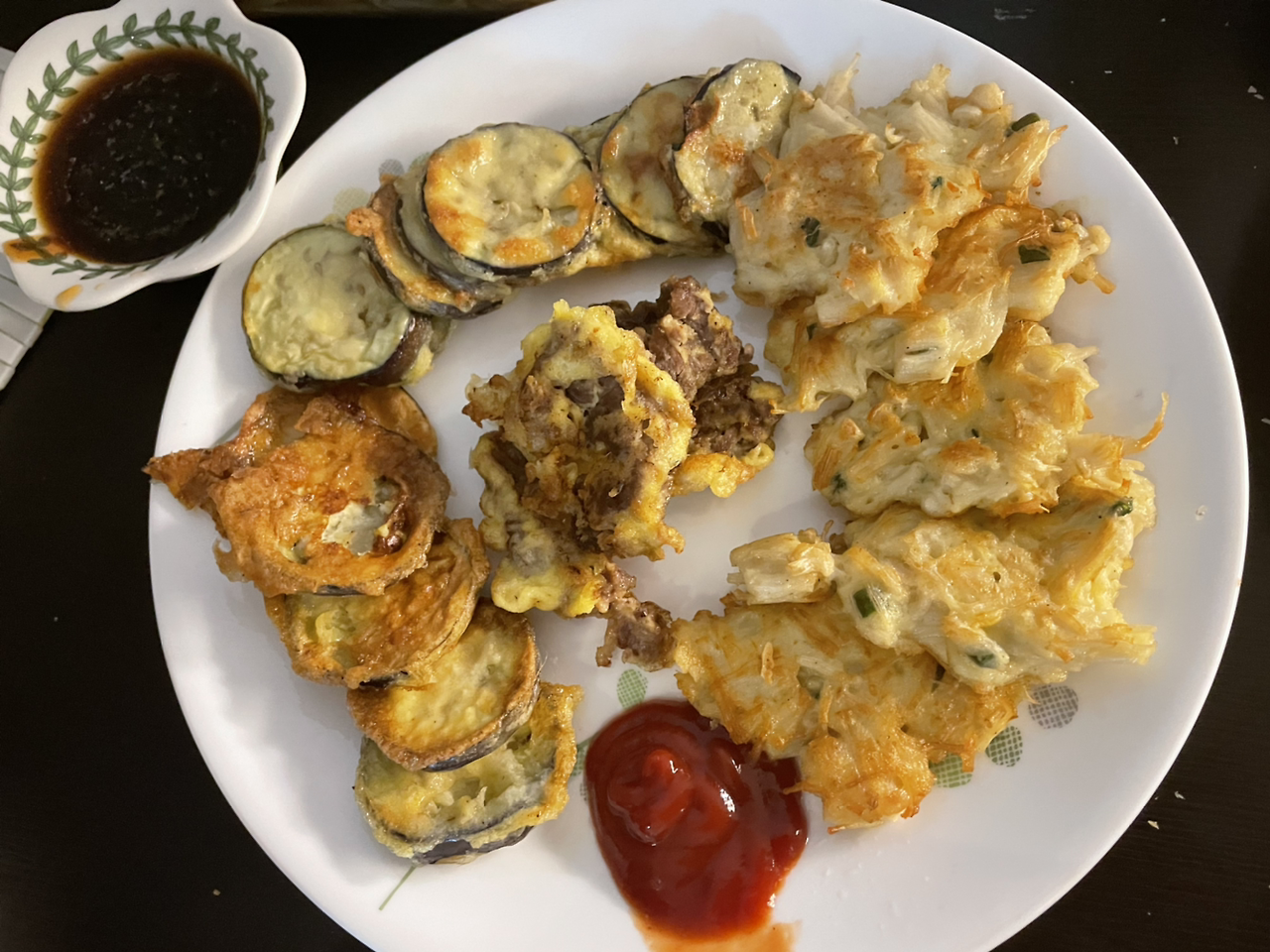 저 사실 가지를 안 좋아해요. 그래서 가지를 어떻게 하면 잘 먹을까? 생각해 보았는데요. 아무래도 튀김만 한 게 없는 것 같아요. 튀김은 신발을 튀겨도 맛있다고 하잖아요. 그래서 가지를 동그랗게 썰어서 계란, 부침가루 묻혀서 튀겨요. 아기도 곧잘 먹어요.