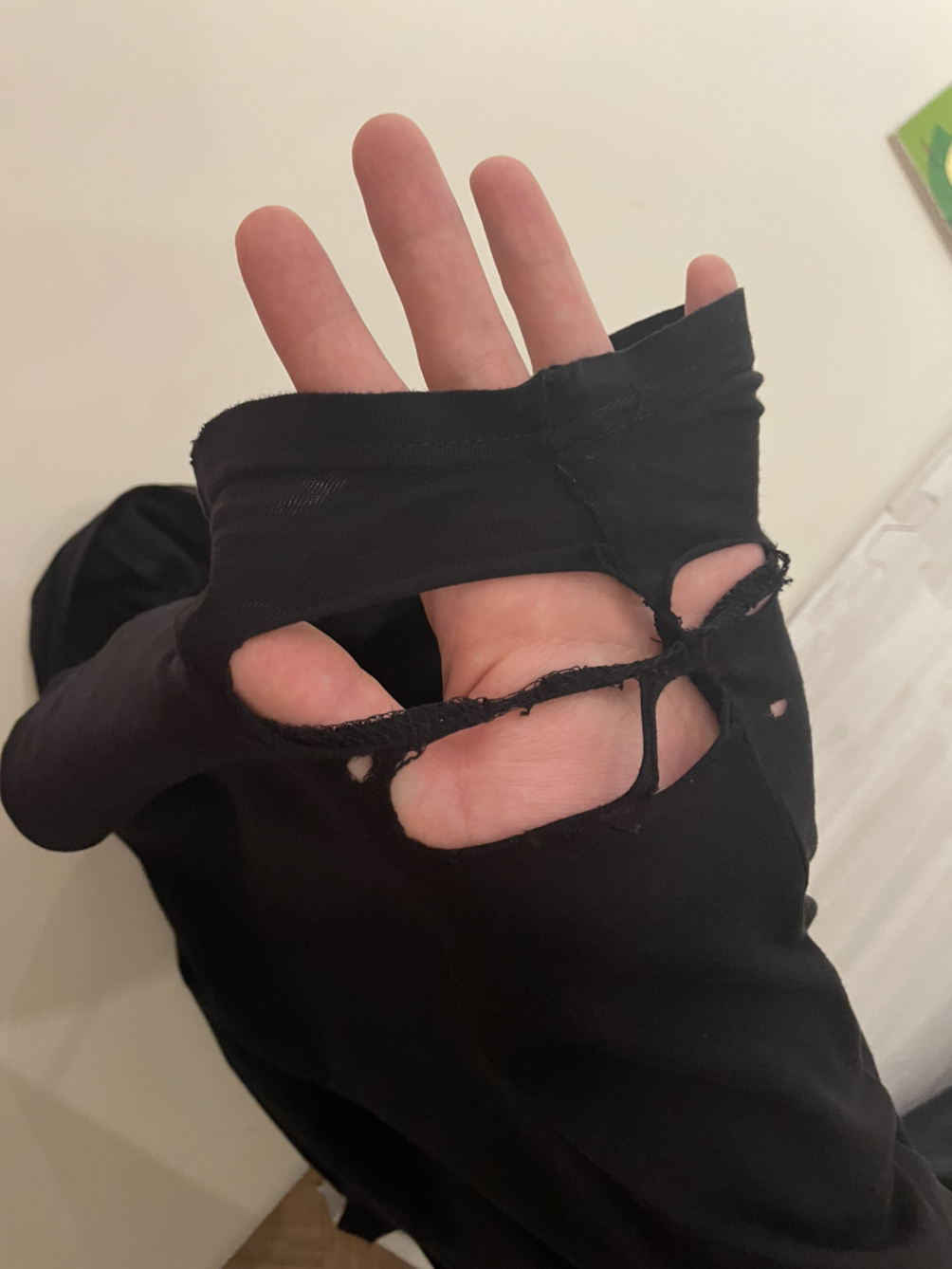 (시크) 응 티셔츠가 닳아서 찢어졌네.