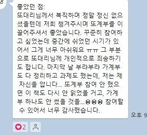 다음은 또 계부 2기 참여자분들의 후기에요.^^