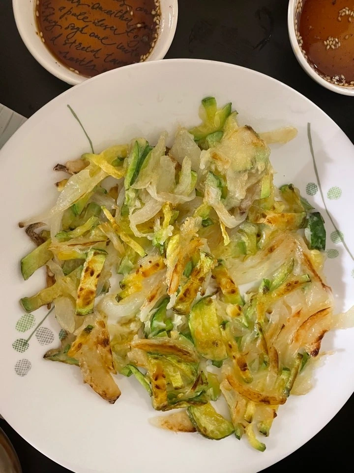 애호박전은 제가 참 애용하는 반찬이에요. 반찬거리가 없을 때 효자 메뉴예요. 만드는 방법도 간단해요. 애호박을 쓱싹쓱싹 채 썰어서요. 그리고 부침가루(튀김가루)와 물을 조금 섞으면 돼요. 왜 그런 말이 있잖아요. ‘튀김은 신발을 튀겨도 맛있다’ 그만큼 애호박전 역시 호불호가 적은 것 같아요. 마트에 가면 애호박전을 천 원 정도에 살 수 있어요. 천 원짜리 애호박전을 사면 부침개 2장이 나와요. 그럼 신랑과 충분히 나눠먹을 수 있어요. 그래서 항상 냉장고에 애호박을 쟁여놓아요. 꼭 부침개가 아니라 다양한 요리에 활용할 수 있으니까요.
