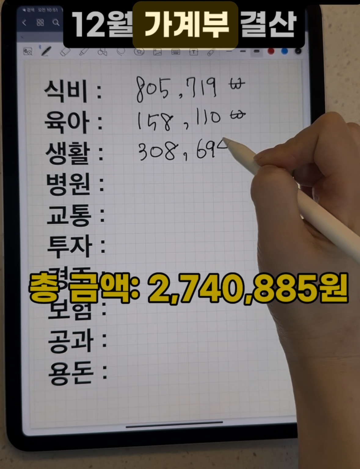 가계부 이렇게 영상으로도 올렸었다