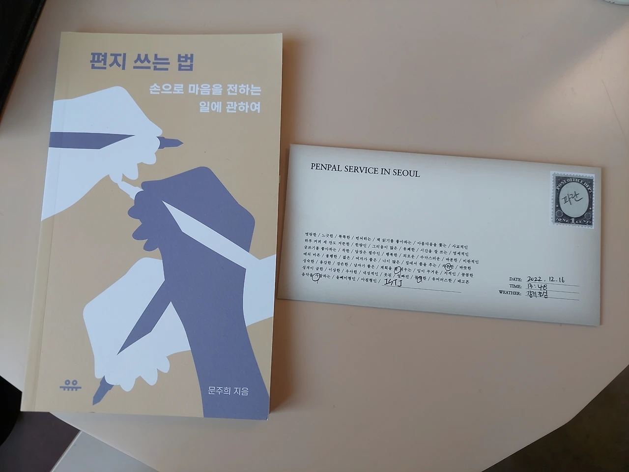 펜팔 편지를 쓰는 건 길거리에 다니는 수많은 사람 중에서 아무나 한 사람을 붙잡아 밑도 끝도 없이 내 이야기를 건네는 느낌이었다. 마치 '도를 아십니까'가 된 것 같은 기분. 낯선 사람에게도 능숙하게 말을 거는 그들도 맨 처음에는 되게 민망했겠구나 싶었다. 처음에는 쭈뼛거렸는데 눈 딱 감고 얼마간 내 얘기를 말하다 보니 상대가 편해지면서 수다에 속도가 붙었다. 그 사람이 뭘 좋아하는지, 어떤 성격인지, 나보다 어린지 아니면 훨씬 나이가 많은지, 그 어떤 정보도 없는 사람에게도 이런저런 얘기를 써 내려갈 수 있었다. 지독하게 추운 오늘의 날씨, 2022년이 어떤 해였는지, 다가오는 크리스마스에는 뭘 하는지를 조잘조잘 얘기했다. '도를 아십니까'가 지나가는 사람들에게 능숙하게 대화를 밀어붙이는 능력을 간접 체험했다.