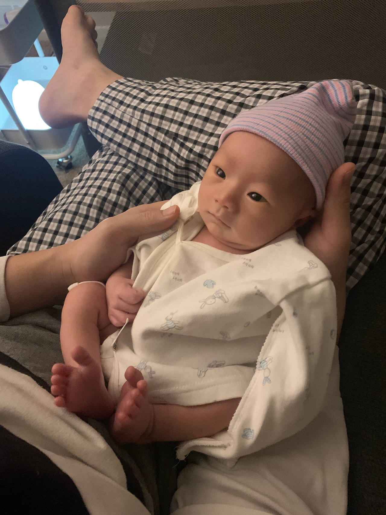그래도 부모인데 배고픈 아기를 마냥 보고 있을 수만은 없으니 속싸개를 푼다. 봉인 해제된 루하는 다리를 열심히 꼼지락거리며 왼손 오른손을 번갈아가며 먹는다. 그 모습도 너무 웃기고 귀엽다. 요즘엔 배변이 활발해져서 밥 타임에는 항상 먼저 기저귀를 갈게 된다. 기저귀를 갈기 위해 한 손으로 기저귀 갈이대로 옮길 때 그 특유의 표정이 있다. 아마 곧 밥을 먹을 것을 아는지 시선을 오른쪽으로 내리깔며 기대에 찬 표정을 짓는다. 수줍은 듯한 표정이라 생각하면 얼추 비슷하다. 신생아가 아니라 무슨 어른을 상대하는 것 같은 순간이기도 하다.