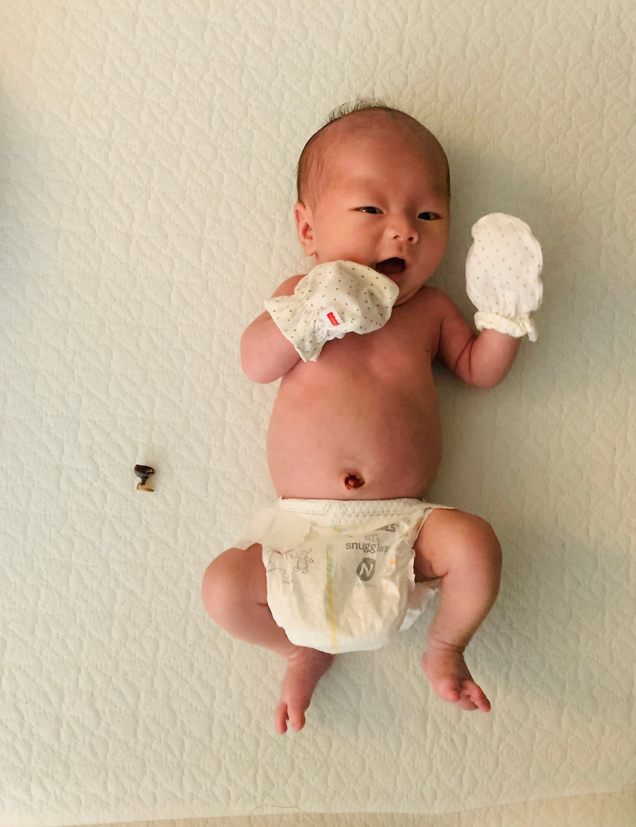 의료진이 1차로 엄마와 아기의 탯줄을 분리하고, 집게로 집고 2차로 내가 짧게 한 번 더 잘랐던 루하의 탯줄. 엄마로부터 모든 공급을 받았던 이 생명줄은 하루도 되지 않아 까맣게 말라비틀어졌다. 치렁치렁하게 달려 있는 이 탯줄이 알아서 떨어질 때까지 기저귀도 탯줄을 피해 한번 접어서 매 줘야 했고 루하를 물속에 넣고 씻지를 못해 가제수건으로 닦아줘야 했다. 무엇보다 시간이 지날수록 꼬름한 냄새가 나서 혹 감염인가 소아과 의사에게 묻기도 했다. 다행히 그런 건 아니었지만 이 냄새나는 탯줄이 하루빨리 떨어지기만을 기다렸었다.