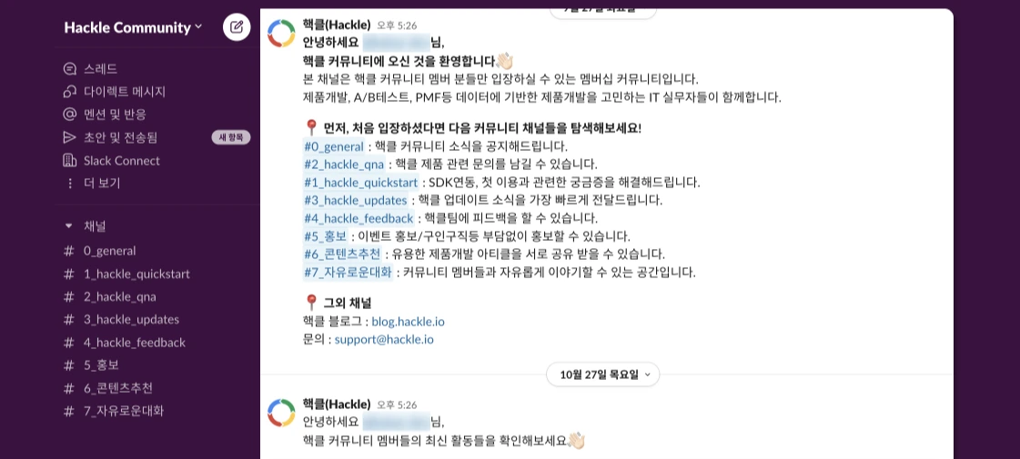 원대한 꿈('요즘 제품 개발 잘하는 사람들이 모인 공간')을 가지고 시작했던 A/B 테스트 실무자 커뮤니티. 여러 가지 내부 사정으로 인해, Impact 대비 리소스가 많이 든다고 판단했고, 고객사 슬랙을 메인 커뮤니티로 키우는 게 Conversion측면에서 더 낫겠다는 결론이 나왔다. 다만 기존 고객사 슬랙은 엔터프라이즈 서포트를 위해 private 채널 위주로만 운영되고 있었기 때문에, 탐색할 수 있는 콘텐츠가 없었다.