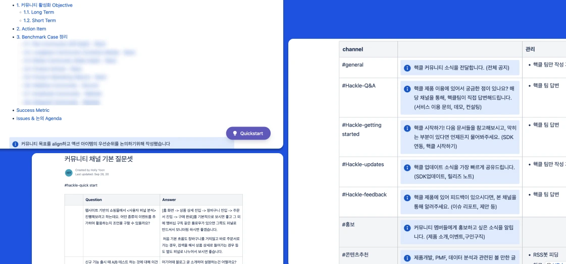 대부분의 고객사들의 60~80%의 질문들은 굉장히 공통적인 부분에서 반복적으로 나타난다. 모든 질문을 private 채널에서 소통하는 게 최선일까? public 채널에서 응대하고 이전 history를 searchable하게 만들 수 없을까? 더 나아가 우리 팀이 대응하기보다, 사용자 간의 다양한 의견 교류를 통해 기본적인 질문은 해결될 수 있었으면 좋겠다.