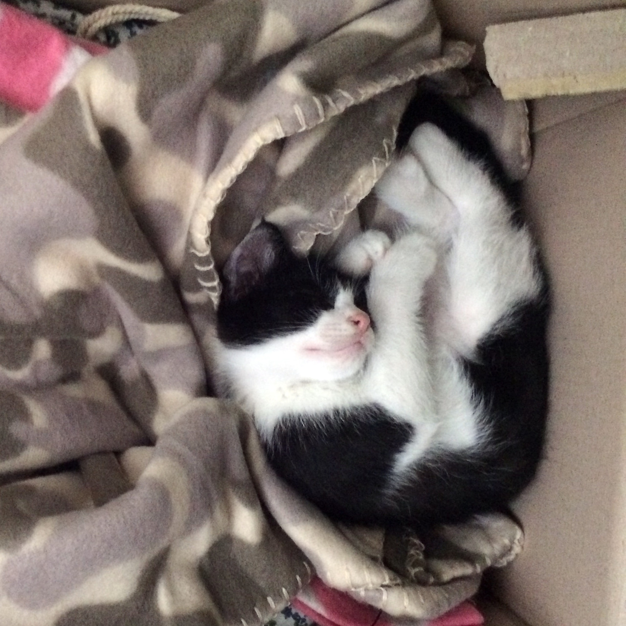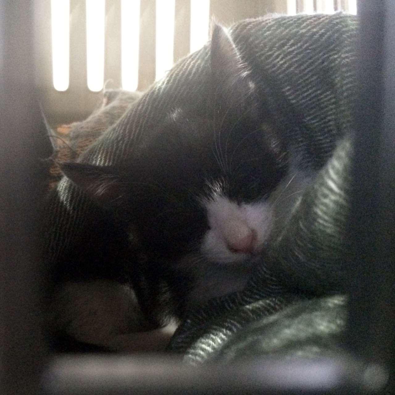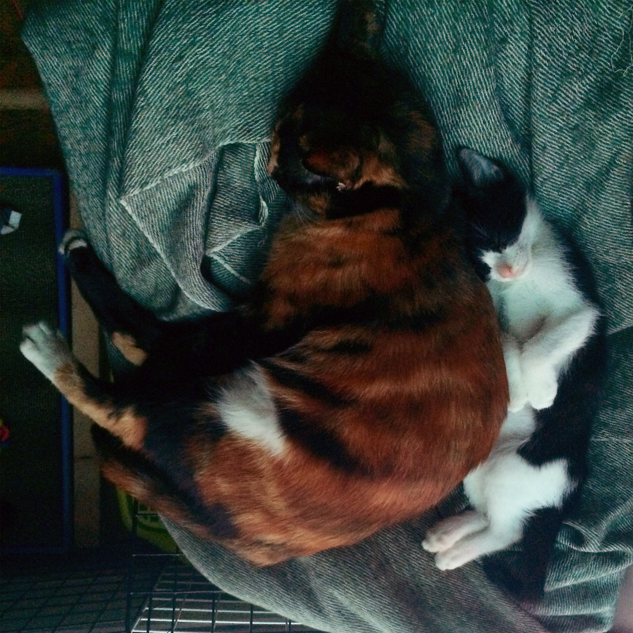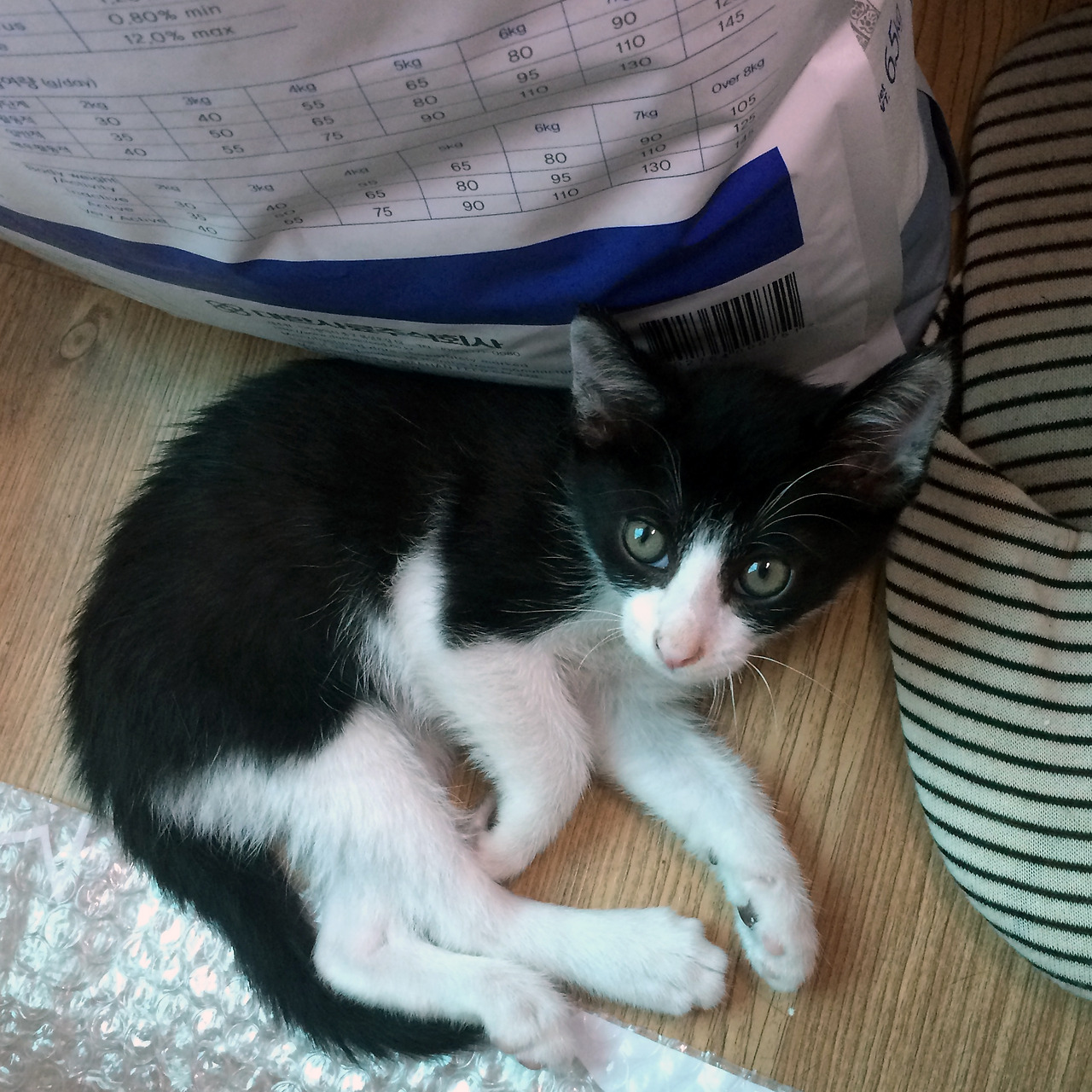 도랑이의 엄마는 길냥이었다. 당시 임신 중이었지만 상태가 좋지 않아서 한 캣맘에 의해 구조되었다고 했다. 그리고 며칠 후 네 마리의 새끼를 낳았고 그중 막내가 도랑이었다. 당시 입양공고 사진에는 네 마리의 새끼고양이가 나란히 찍혀있는 사진이 있었는데 세 마리는 몸에 줄무늬가 있는 태비였고, 도랑이만 흰색과 검은색으로 된 턱시도였다. 외모에 대해서 별다른 생각이 없었던 나는 형제들 사이에서 눈에 띈다는 이유만으로 도랑이를 데려오기로 했다.