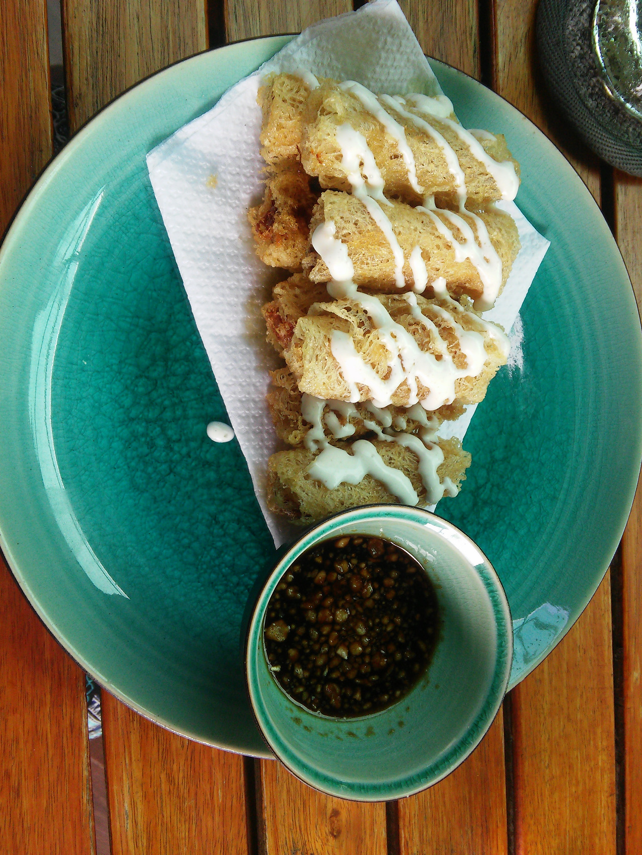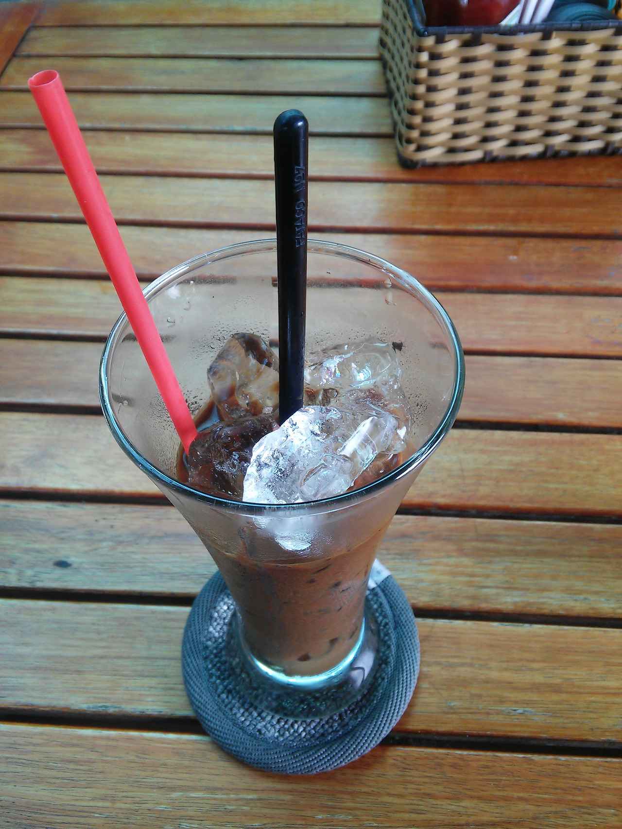 주문은 연유 아이스커피랑 스프링롤로 했다.