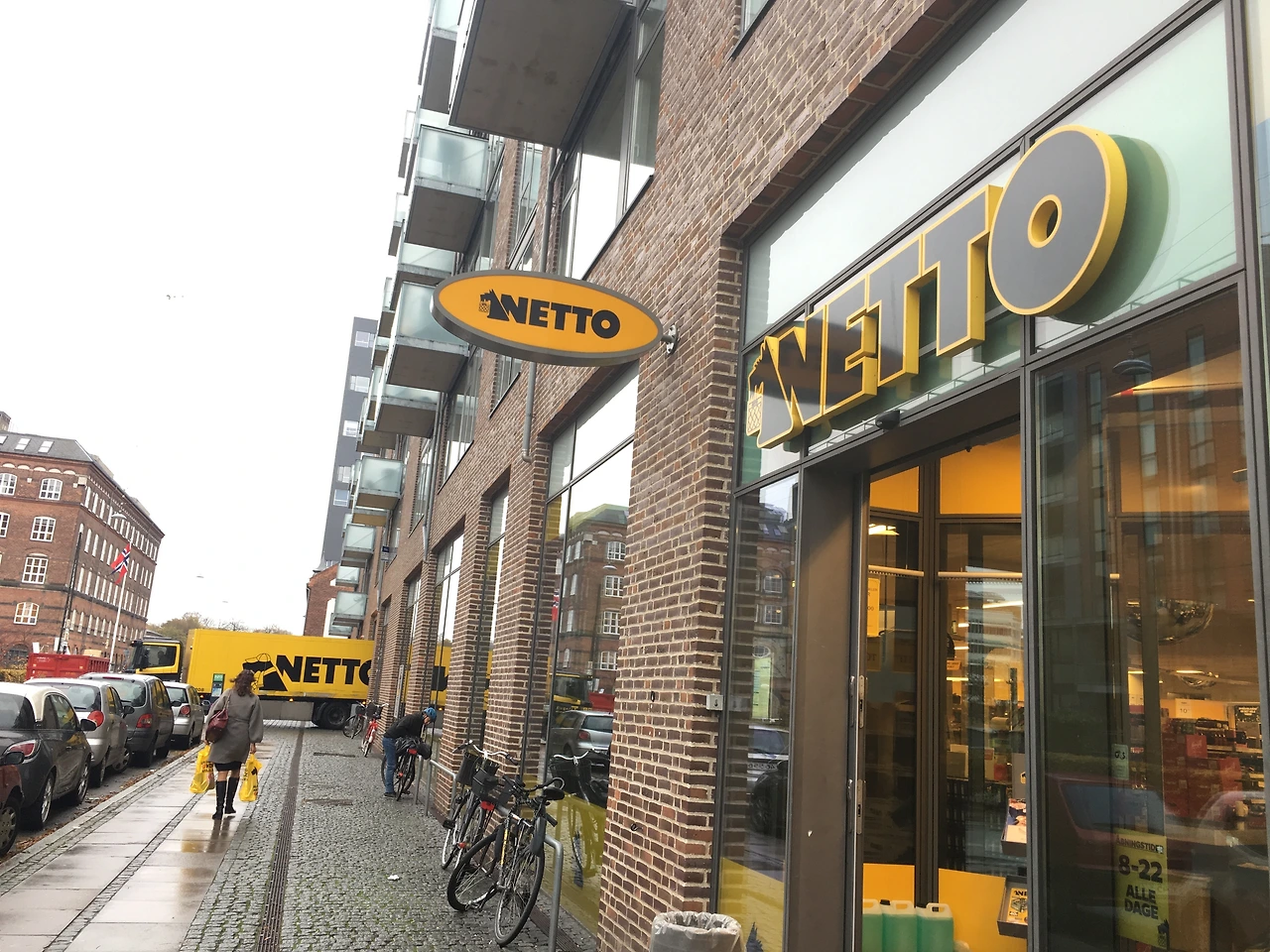 노란색 컬러가 인상적인 슈퍼마켓 'Netto'의 모습