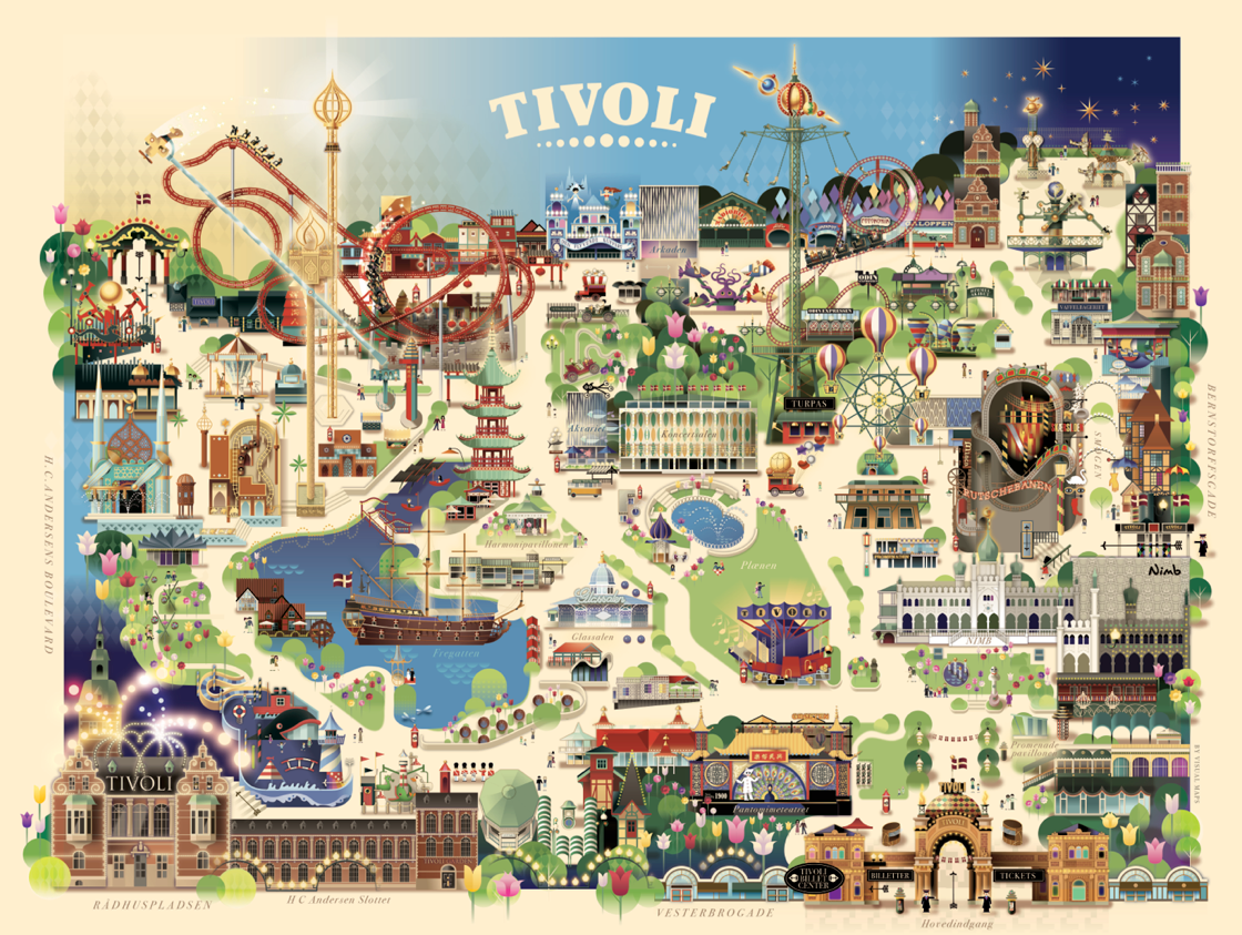 티볼리의 그림지도 / Image by visualmaps.dk, 티볼리 공원의 이정표