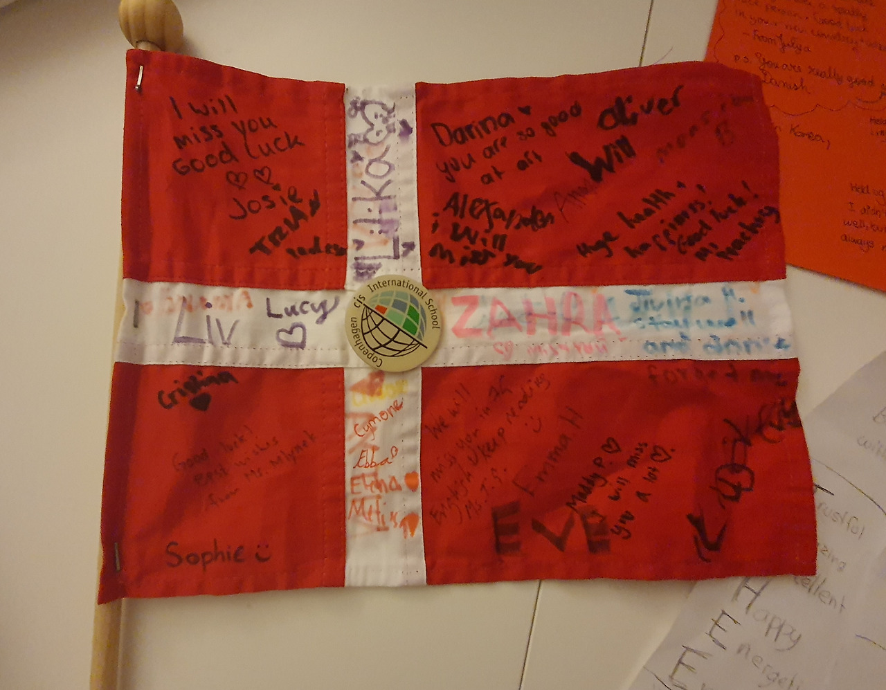우리가 덴마크를 떠나오던 그때에도 딸의 학교 친구들은 덴마크 국기에 헤어짐에 대한 아쉬움이 가득한 메시지를 적어서 딸에게 선물로 주었다. 마치 독립투사들이 비장한 각오를 다지며 태극기에 자신들의 흔적을 남긴 것처럼 특별한 의미가 있는 선물이었지만, 그들은 한국사람들처럼 굳이 비장한 각오가 없이도 늘 국기를 가까이할 뿐 아니라 잘 활용한다.