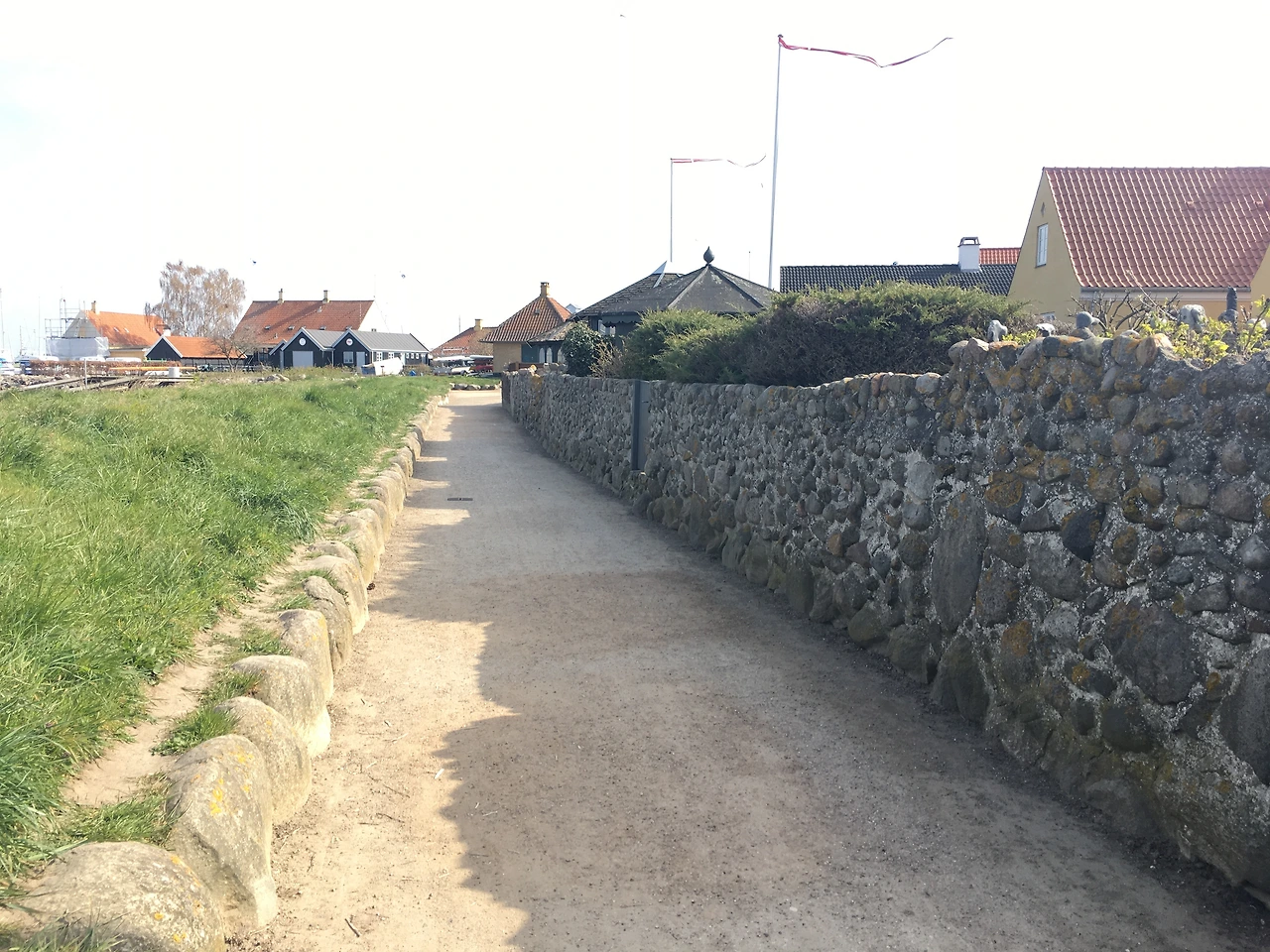 높이가 낮은 집들과 정감 있는 바닷가의 돌담