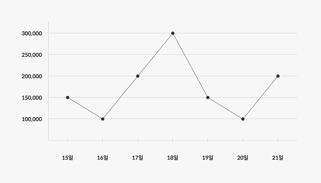 아래의 [그림3]은 [그림 2]의 일별 데이터를 꺾은 선 그래프로 그린 것이다.