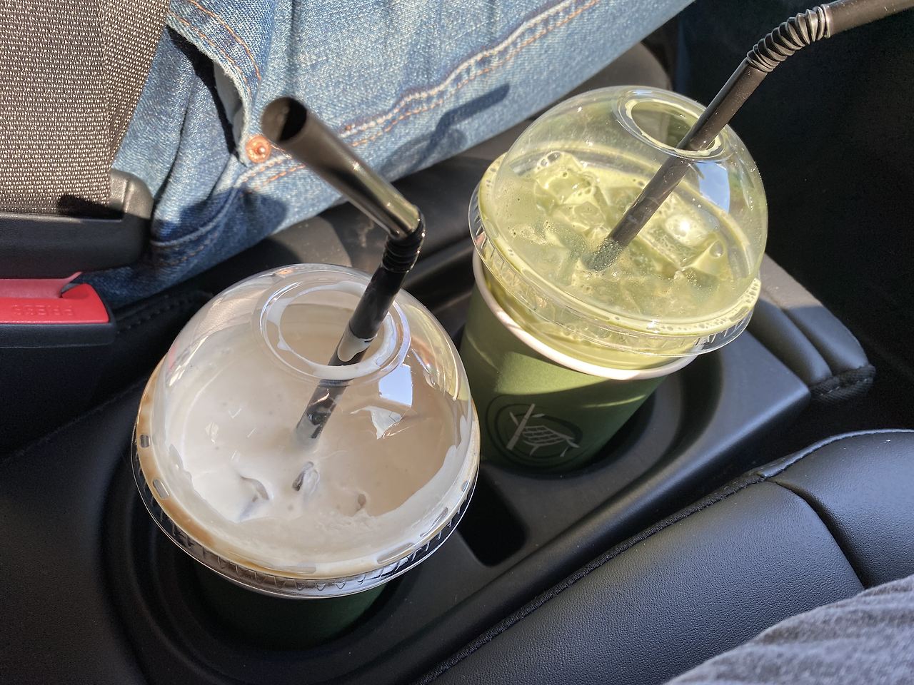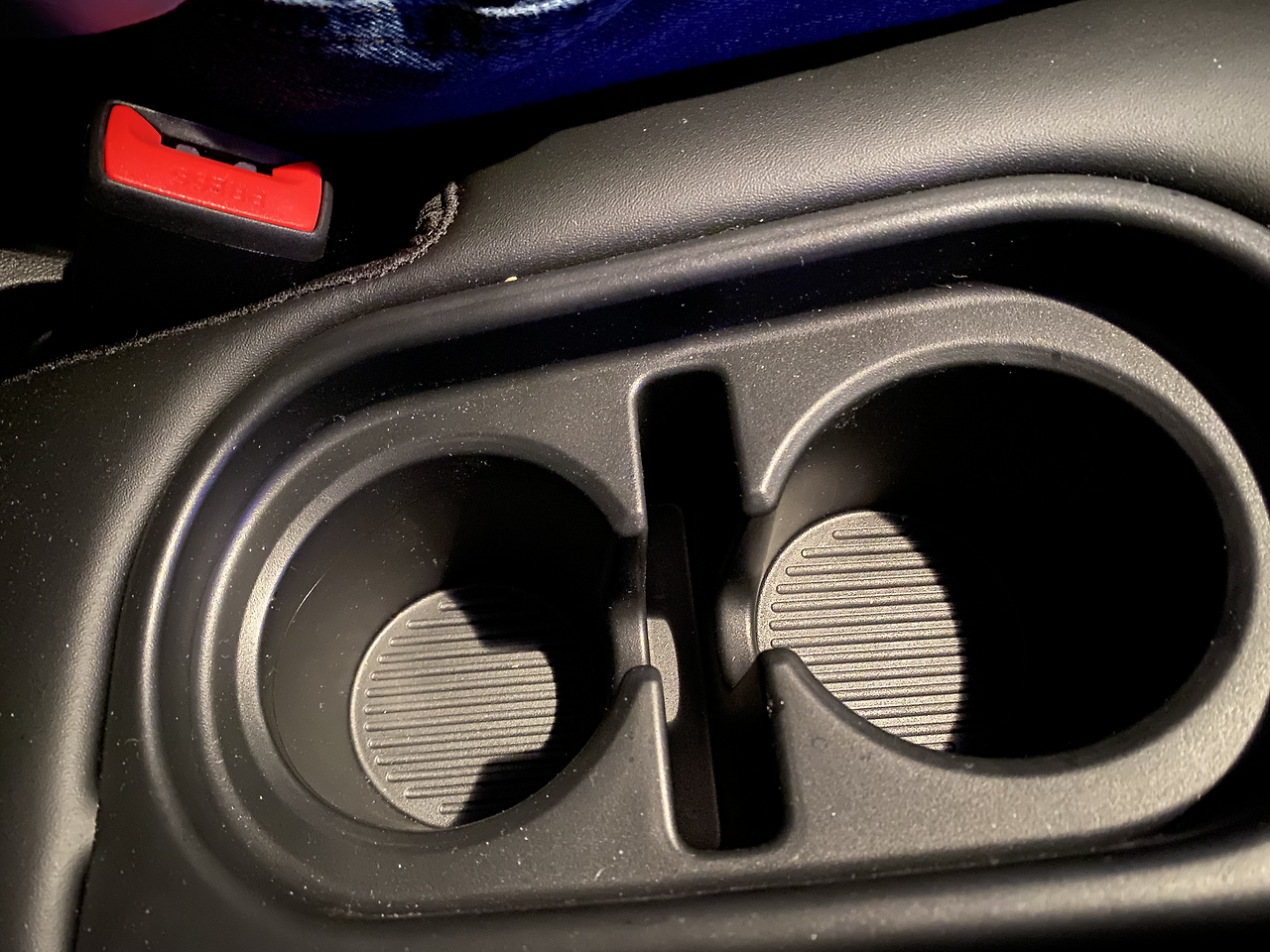 컵 홀더는 정말로 와우했던 부분이다. 홀더 양쪽으로 컵을 넣고 사이에는 휴대폰과 같은 물건을 수납할 수 있다. 처음에는 '크기가 애매한 거 아니야'라는 생각이 들었는데 실제로 수납을 해보니 일반적인 테이크아웃 컵 두 개와 휴대폰이 무리 없이 들어갔다. 공간 활용이 무척 만족스러웠다.