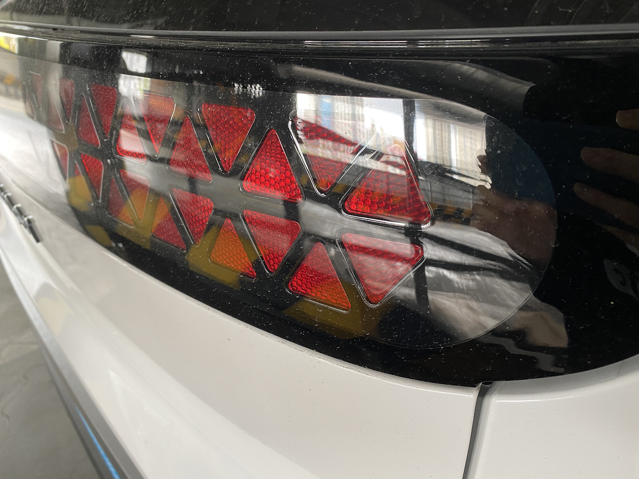 캐스퍼는 곳곳에서 육각형의 디자인 큐를 찾아볼 수 있다. 먼저 기본 모델 전면의 라디에이터 그릴을 보면 삼각형이 반복되며 육각형의 패턴을 이루고 있다. 상단으로 시선을 옮기면 턴 시그널 램프 끝에서 다시 한번 육각형의 포인트가 나타난다. 그리고 빙 둘러 차량의 뒤쪽으로 오면 앞서 본 라디에이터 그릴의 디자인 패턴이 브레이크 등에서 다시 반복되는 것을 찾아볼 수 있다.