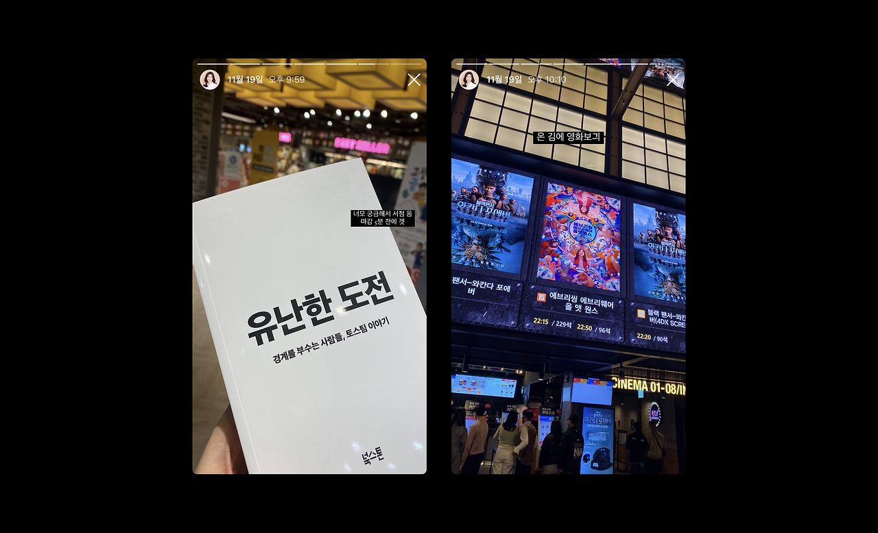 그렇게 마감을 5분 남기고 책 ‘유난한 도전’을 손에 얻었다. 기왕 이렇게 나왔는데 그냥 들어가긴 아쉬우니, 영화나 한 편 보기로 했다. 우리가 고른 영화는 ‘에브리씽 에브리웨어 올 앳 원스’. 영화가 시작하길 기다리면서 책을 들춰보았다. 이야기는 토스가 세상에 나오기 전, 이승건 대표의 고민으로부터 시작하고 있었다. 개원을 앞두고 있던 이승건 대표는 본인이 진짜 원하는 일이 무엇일지 생각한다. 그리고 그 과정에서 잡스의 스탠퍼드 졸업식 연설이 소개된다. 그중 한 구절이 내 마음을 끌었다.