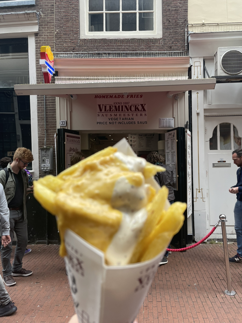 미술관을 나와 암스테르담 오면 꼭 먹어야 한다는 감자튀김을 먹으러 갔다. 유명하다는 집이 몇 개 있었는데, 여러 후기를 보고 특히 바삭하다는 집을 찾아갔다. 소스 고르는 게 힘들었는데, 요피 소스와 트러플마요 소스 조합은 굿!! 좋은 선택이었다.