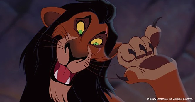 디즈니 역대 빌런 중 가장 섹시하고 무서운 인물로 평가되는 '스카'입니다. 이름부터 멋지지 않나요? 검은 갈기가 흑발 느낌을 내고, 눈매도 스모키 메이크업한 듯 퇴폐적입니다. 무엇보다 제레미 아이언스의 목소리가 스카의 빌런미를 극대화하였는데, 한동안 디즈니는 제레미 아이언스의 스카를 능가하는 빌런 캐릭터를 가지기는 어려워 보입니다.