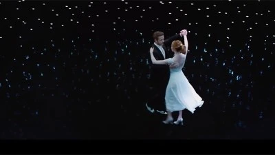 두 연인은 우연히 서로를 알아보고 마법처럼 사랑에 빠집니다. 이상과는 거리가 먼 바보같은 파티에 참석해 꿈을 좇다가 마주쳐 툭탁대는데, 겁쟁이와 징징이답게 '너는 내 타입이 아니' 라고 강조합니다. 하지만 이내 동질감을 느끼고, 함께 라라랜드의 풍성한 노을 아래서 춤을 추고 노래를 하고, 사랑에 빠집니다.