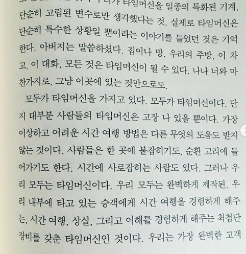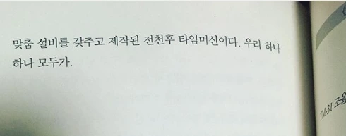"우리 모두는 완벽하게 고객맞춤형으로 제작된 전천후 타임머신이다."