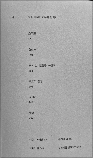 단편소설 모음집을 읽다 보면, 서로 다른 예닐곱 개의 이야기가 담겨 있지만 왠지 모르게 다른 소재를 가진 하나의 이야기라고 느껴지는 경우가 종종 있다. 분명 장소도 다르고 인물도 다르고 소재도 다른데, 패턴이 비슷하거나, 말하고자 하는 주제가 유사하거나. 그래서 다른 예닐곱 개의 단편을 읽었음에도 이 이야기가 그 이야기 같고 그 이야기가 이 이야기 같은. 누가 봐도 이 작가가 썼을 것 같은, 그런 느낌.