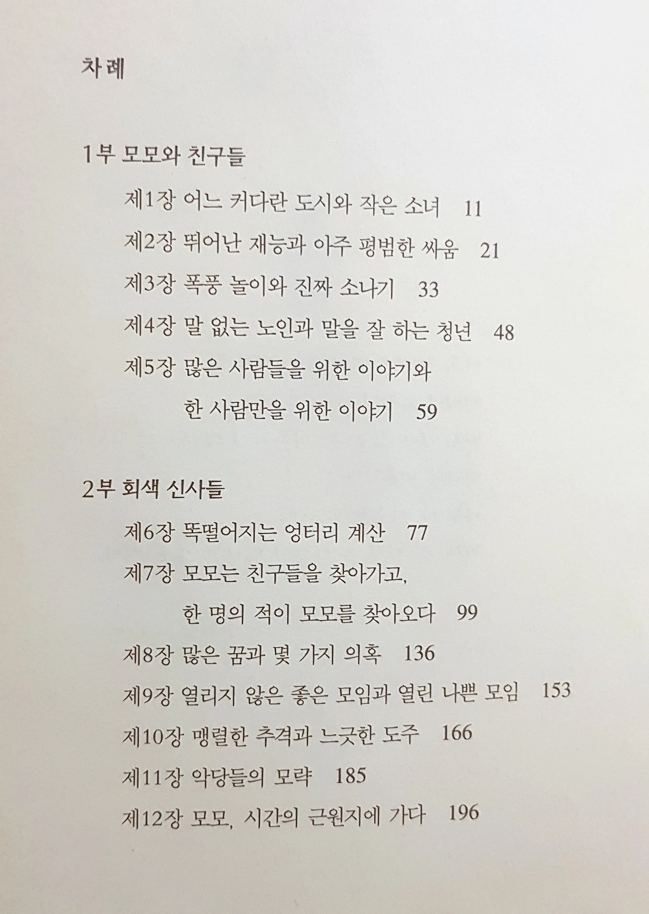 "한꺼번에 도로 전체를 생각해서는 안 돼, 알겠니? 다음에 딛게 될 걸음, 다음에 쉬게 될 호흡, 다음에 하게 될 비질만 생각해야 하는 거야. 계속해서 바로 다음 일만 생각해야 하는 거야."- P5