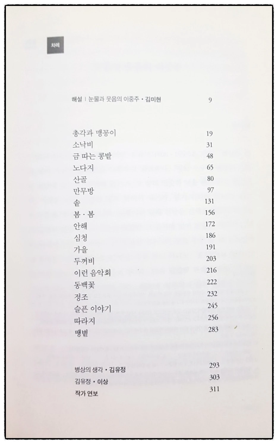 이 글을 보고 나는 혼란에 빠졌다. '동백꽃'이 야한 소설이었나? 그냥 점순이랑 남자 주인공이 썸 타는 내용 아니었던가? 이런저런 생각을 하면서 나는 또한 '내가 동백꽃을 읽었는지 안 읽었는지 자신이 없어졌고 김유정의 소설 중 제대로 읽은 것이 있기나 한지 의문이 들었다. 더 나아가 한국 단편 문학을 몇 개나 읽었는지 곰곰이 생각해 보니 교과서에서 저자와 제목을 사랑의 작대기 엮듯 짝짓기만 했지 정작 읽은 건 몇 개 되지 않았다는 생각이 들었다. 그래서 이번에 도서관에 갔을 때 나는 김유정의 단편집을 망설임 없이 집어 들었다.