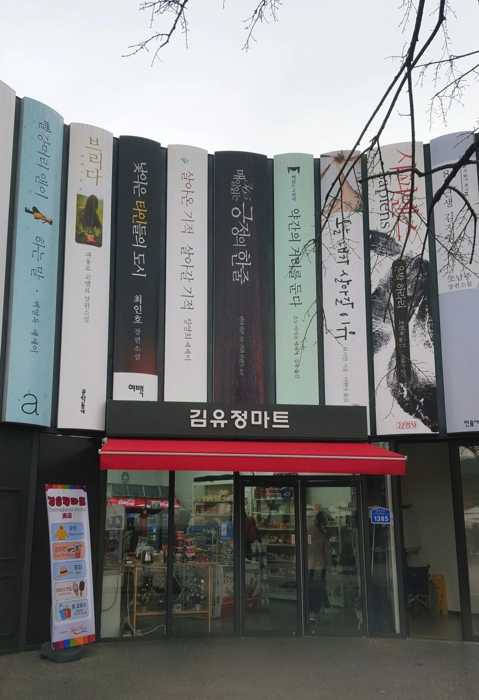 강원도 춘천의 레일바이크장과 그 곳에 있는 김유정 마트. 레일바이크장에는 김유정을 기념하여 책으로 꾸며놓았다.