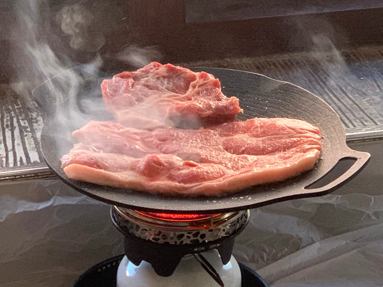 속도가 조금 빠른 멤버 8명은 먼저 대피소에 도착해 불을 올려놓기로 한다. 대피소에서는 화기 사용이 가능해 사골 진액과 만두피, 그리고 고기를 챙겨갔다. 산 위에서 먹는 고기는 정말 꿀맛 그 자체다. 게다가 대피소에서 식사를 끝내신 분들이 남은 허브솔트와 파, 고추 등을 나누어 주셔서 더 풍성한 한 끼가 되었다.