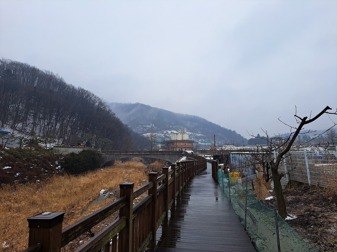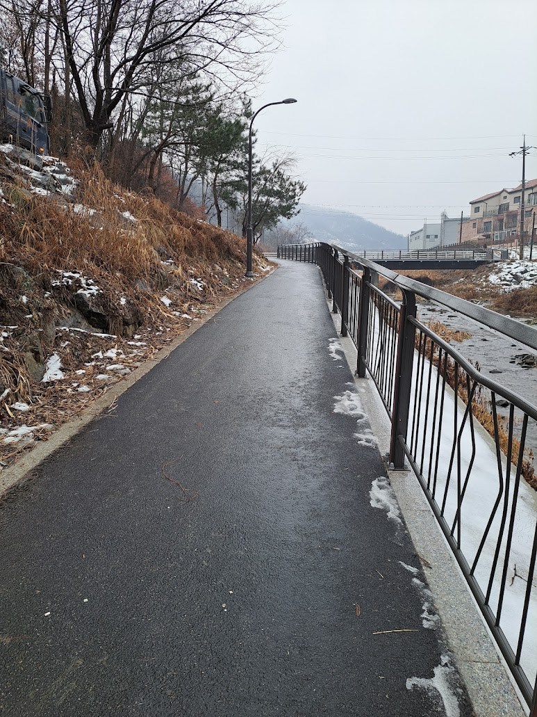 계속 걸었다. 도로를 건너 산책로에 진입했는데 마찬가지로 얼어있어야 할 길이 녹아 있다. 조금 더 걸어보았다. 냇가 옆 산책로로 들어서니 초입부터 길 끝까지 얼음들은 전부 녹아 있었다. 결국 그날 난 끝까지 산책을 마쳤다.