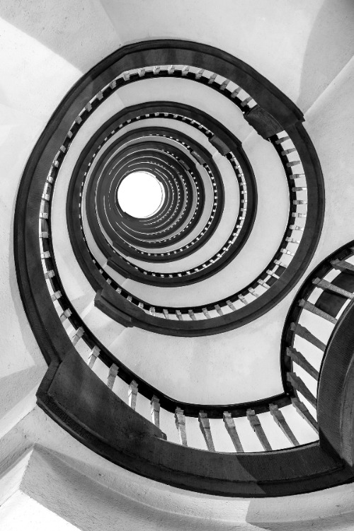 2층에서 아래를 보고 용기를 다진 뒤 위를 바라보았다