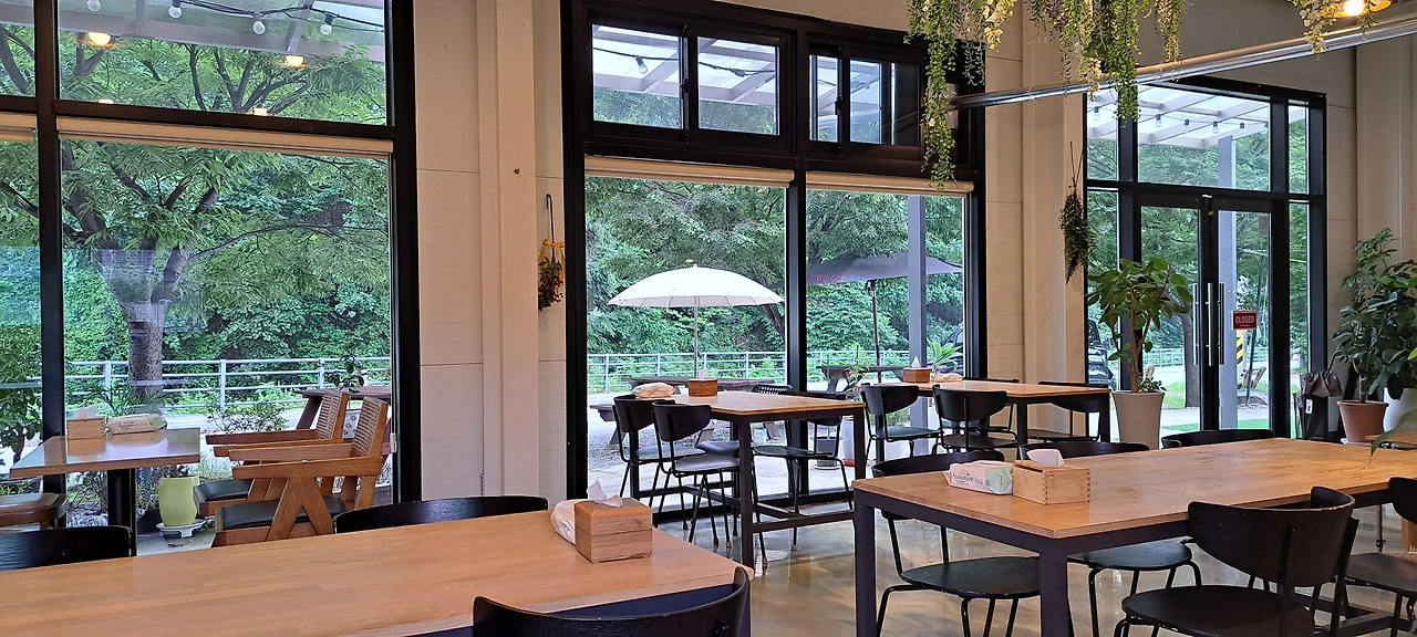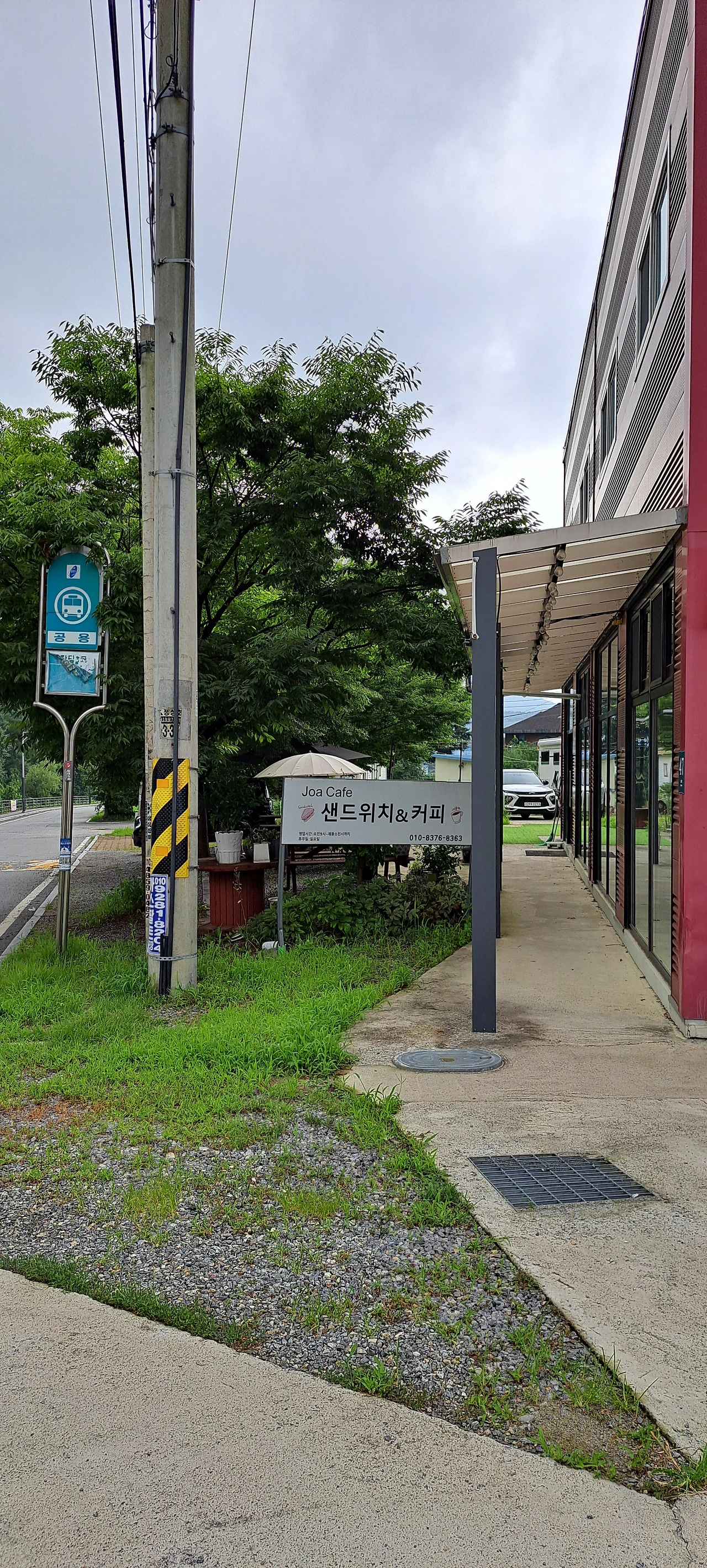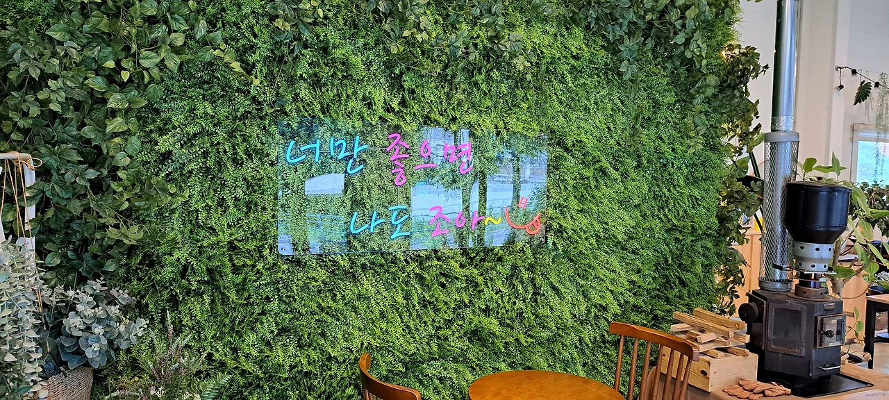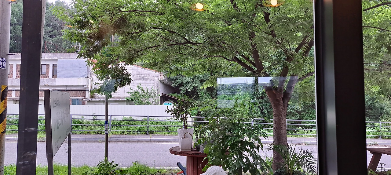 청랑한 녹빛이 가슴에 서늘한 산들바람을 불어댑니다영화나 연애소설에서 나올 듯한 버스 정류장 옆 카페다. 한겨울 늦은 밤, 주인공이 사랑을 고백하거나 이별을 고하러 와서 창밖을 보며 초조하게 기다림의 시간을 보낼듯한 장소.