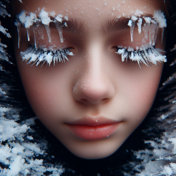얼음알갱이로 속눈썹에 방울방울 맺혔다.