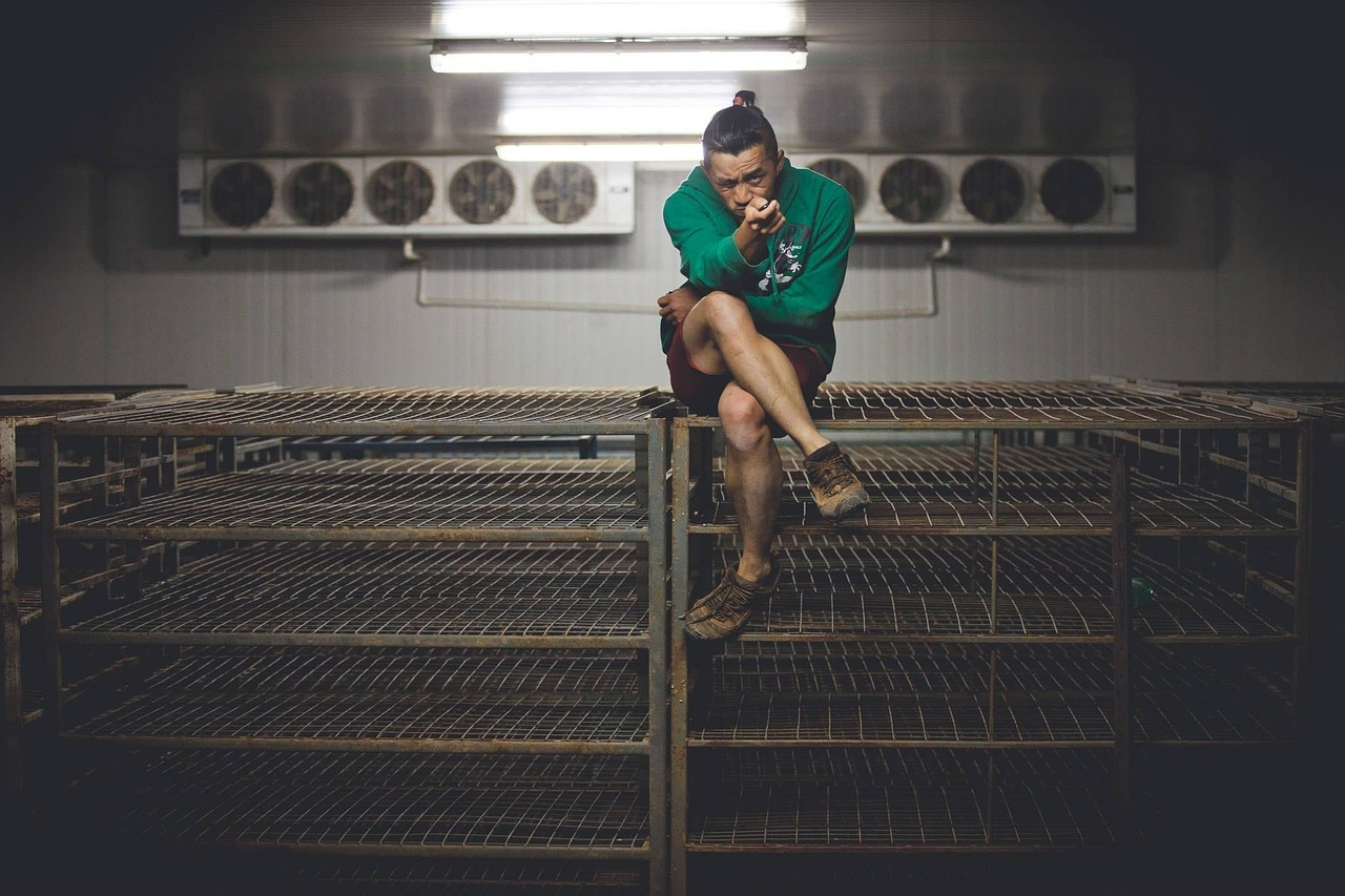 곧 땀에 젖은 채로 다시 냉동창고에 들어간다.