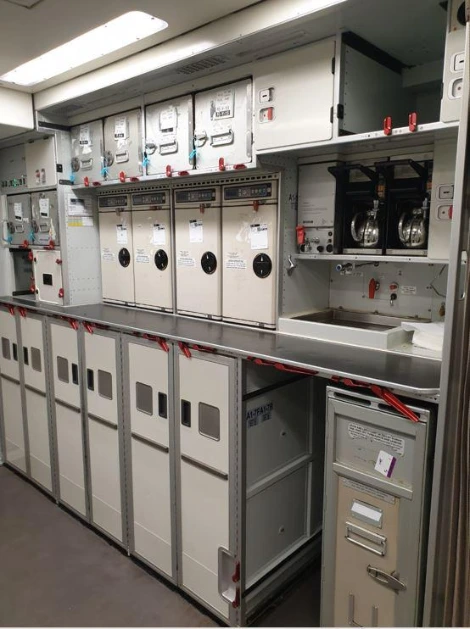 '기내의 주방인 갤리의 측면'