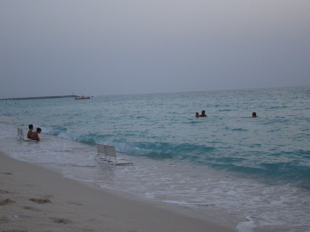 해가 진 주메이라 해변에 아이들이 신나게 놀고 있다.