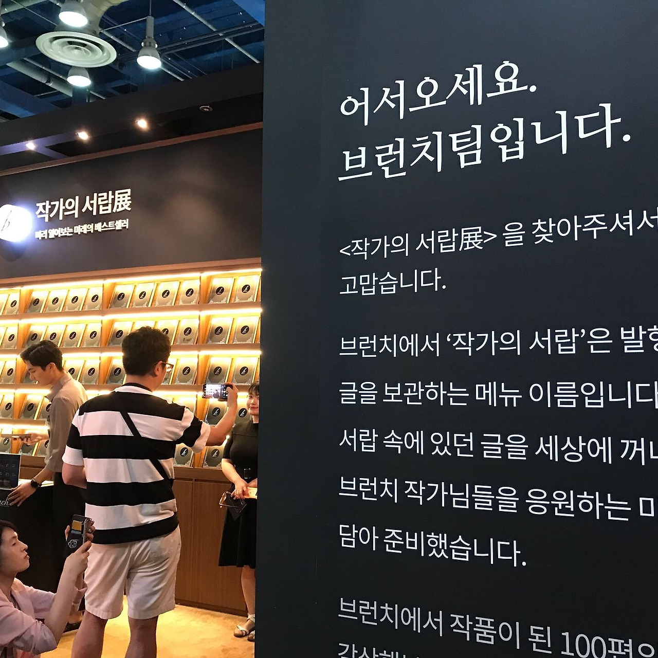 온라인 출판을 대표하는 브런치 부스는 어쩌면 그냥 지나칠 수 있었지만 곱씹어 보면 가장 인상 깊은 부스였습니다. 내부 부스는 독자가 관심 있어하는 주제를 선택하면 브런치에 게재되었던 글을 추천해주는 간단한 아이디어로 진행되고 있었는데요. 사실 이 아이디어가 다른 부스들과 근본적인 차이를 보여주고 있었습니다. 바로 '독자'중심의 큐레이션인 것이죠. 사실 브런치는 수많은 작가들이 개별적인 출판을 하는 플랫폼이기도 하지만, 동시에 글을 읽고 싶어 하는 독자들에게 그런 작가들의 작품을 소개하는 온라인 큐레이션 공간이기도 하기 때문입니다. 아직은 간단한 수준에 큐레이션이었지만, 보다 정교하게 개인화된 큐레이션이 가능해진다면. 그리고 그것이 오프라인 공간에서 어떻게 활용될 수 있는지에 대한 궁금증을 불러일으켰습니다. 더구나 브런치를 사용하고 활용하는 작가들의 지지가 꽤 견고하다는 인상도 주었습니다. 브런치를 통해 자신의 책을 만들어 본 사람들의 효능감의 효과가 천천히 나타나고 있는 것이랄까요.