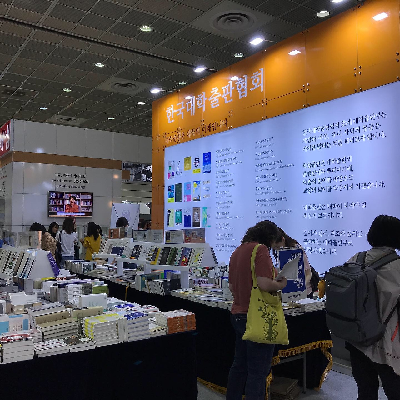 그밖에도 책의 내용과 주제에 흥미를 느낀 부스는 한국대학출판협회였습니다. 최근에 관심가지고 읽었던 일제강점기에 대한 자료들이 눈에 띄었거든요. 물론 한 일 년을 넉넉히 잡아야 읽을 수 있을 것 같은 책들이 대다수였지만, 그래도 이런 자료들이 여전히 연구되고 출간되고 있다는 사실에 놀라웠습니다. 대학교에서 출간된 책들은 마케팅이 전혀 되질 않으니, 이런 책들의 존재가 전혀 보이지 않았던 거죠. 그런데 분명 이런 책들은 어떤 관심사를 깊이 공부하거나 사유하고자 할 때 필요한 자료들일 것입니다. 대학에서 나오는 연구 저작물들이 어떻게 더 '보이게', '읽을 수 있도록' 하는 방법을 무엇일까. 그런 생각이 들었습니다. (의미있는 연구들인데 좀 아쉽잖아요..)