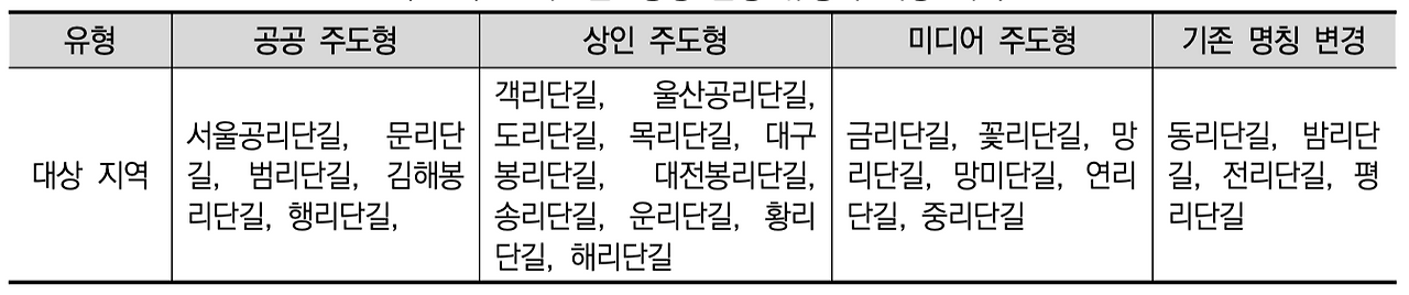 김주일, "~리단길 현상의 사회적 공간적 특성 연구 - 인터넷 트렌드 데이터와 입지 여건 분석을 중심으로. 한국도시설계학회 지 도시설계," 『한국도시설계학회지 도시설계』, 20(3), 2019. 한국도시설계학회