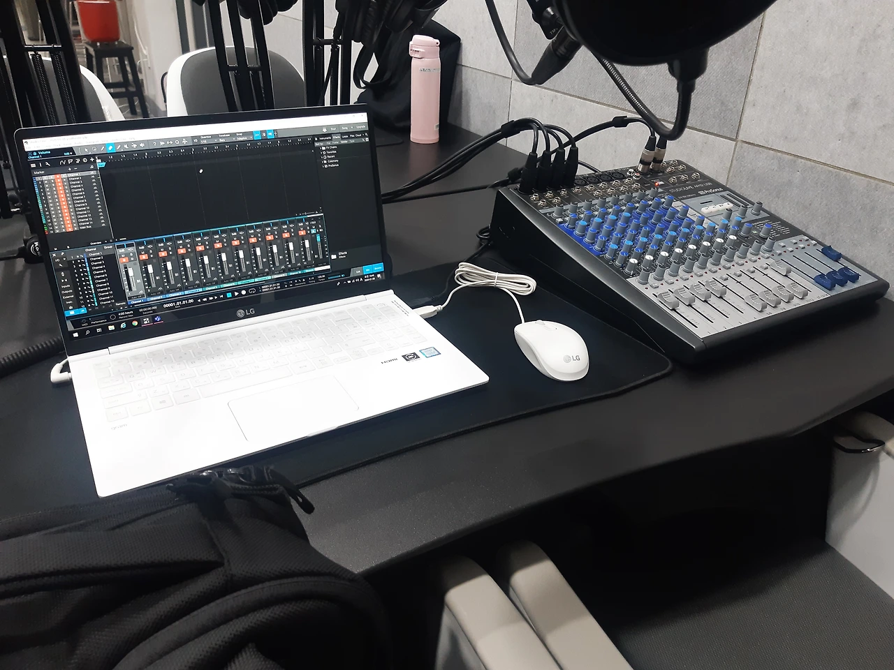 그래서 다른 곳으로 도전! 무중력지대 영등포의 미디어 지대를 찾았습니다. 여기는 한 시간에 10,000원(VAT 포함). 시설도 깨끗하고 장비도 훨씬 좋고. 셋팅을 도와주신 스태프도 친절하셨습니다. 책상 위에는 녹음 중 소리가 들어갈까 패드도 깔려있고, 아주 세심한 공간이었습니다. 이곳이 바로 우리가 정착할 그곳인가! 라고 생각했지만. 여기도 전자파 간섭이 있었습니다.(다른 분들 후기를 보니 조명 탓이라고 생각하는 분도 계셨는데 잘은 모르겠네요.) 그리고 모니터 이어폰을 따로 사용할 수 있던 건 아니어서 각자 헤드폰으로 음량을 동일하게 맞췄다고 생각했지만, 녹음 파일은 다르게 소리가 들어가 있었습니다. 양천과는 달리 트랙별로 저장되는게 아니라 마스터 파일만 저장되서 트랙 별 음량 조절을 하는 것도 불가능했습니다. 결국 전문적으로 기기를 다루는 사람이 있지 않은 이상 스튜디오도 제대로 활용하기 어렵다는 결론에 이릅니다.